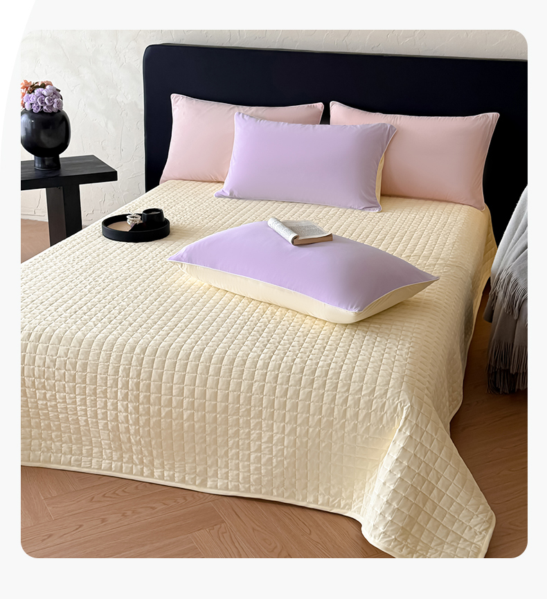 被子 > 夏被 > 羚羊语家纺 2026新款仿锦氨凉感夏被床盖四件套夹棉床盖纯色轻奢凉感丝夏凉被空调冰丝云母凉感被子被芯 紫陌柔黄