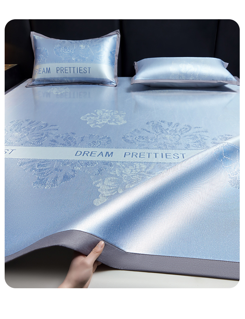 (总)航途席业 2026新款星河织梦提花粗冰丝席凉席席子,暮云灰,晴川蓝,松间绿,桃夭粉,组合图仅供展示-不可下单