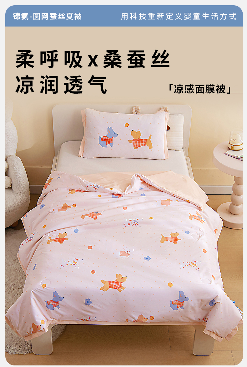 商品名称:御棉坊2026新款A类锦氨数码印花圆网蚕丝儿童夏凉被幼儿园午睡被宝宝夏季空调被薄被子 锦氨-狗乐园