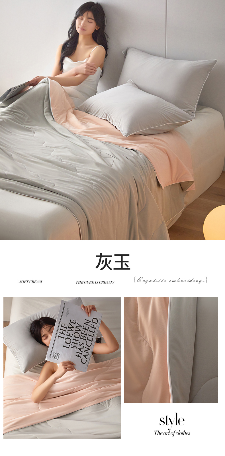 (总)头等舱 2026新款锦氨(165克)水光亮面锦A类55莱赛尔植物大豆7A抗菌夏凉被夏被(模特图),幻影灰,幻影灰+奶黄,暖黄+水粉色,浅天兰+奶黄,浅天兰+银灰,水粉色+银灰,水蓝色,天青色+暖黄,银灰+暖黄,配礼盒