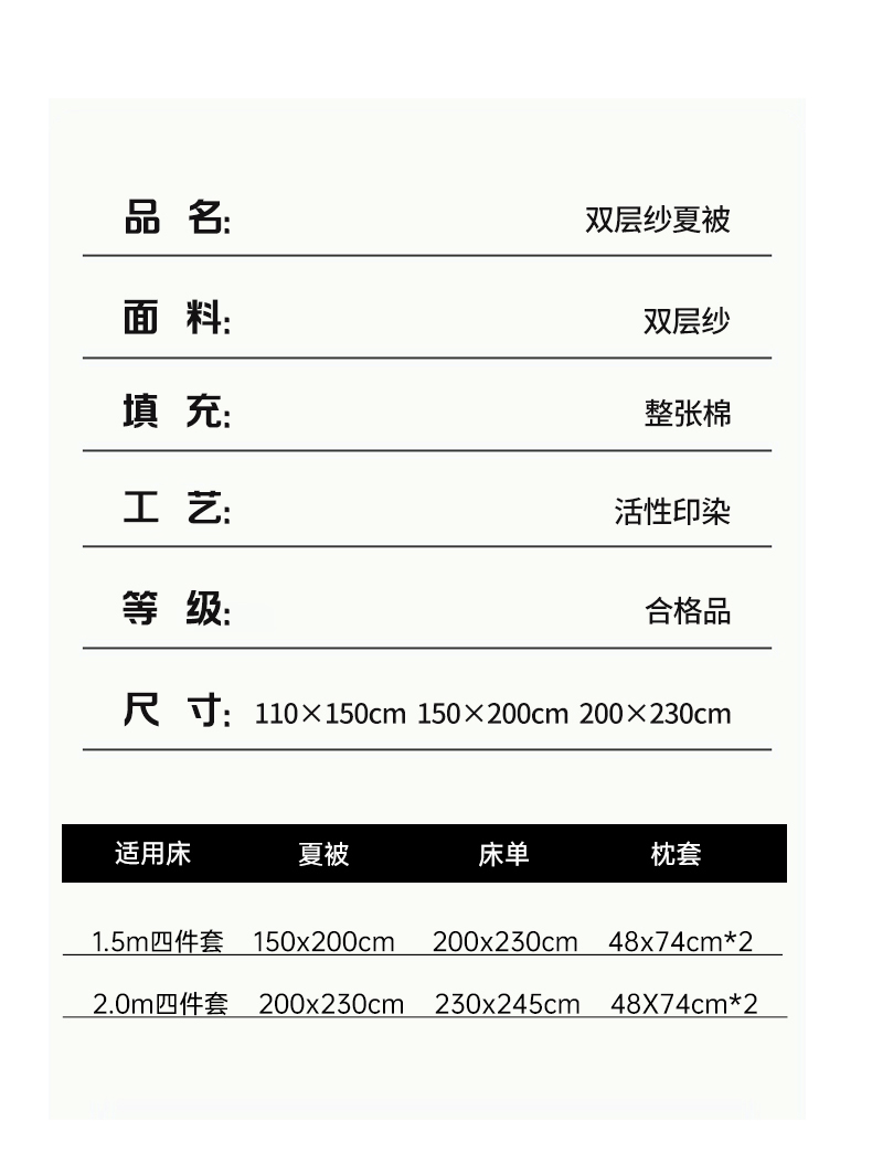 [{"sp_id":1,"sp_name":"\u989c\u8272","sp_format":2,"sp_list":[{"sp_value_id":647,"sp_value_name":"\u8349\u8393\u679c\u56ed","sp_value_image":{"id":999,"path":"https:\/\/img3.91jf.com\/ghelp\/2026\/20260331\/20260331165020_359879.jpg"},"sp_value_video":{"id":0,"img":"","path":"","time":0,"download_num":0,"play_num":0},"price":"45.00","storage":2000,"weight":"1.500","is_check_weight":0,"plus_price":"","sp_sort":14}]},{"sp_id":27,"sp_name":"\u5c3a\u5bf8","sp_format":1,"sp_list":[{"sp_value_id":302,"sp_value_name":"150*200cm\u5355\u590f\u88ab","sp_value_image":{"id":0,"path":""},"sp_value_video":{"id":0,"img":"","path":"","time":0,"download_num":0,"play_num":0},"price":"45.00","storage":500,"weight":"1.500","is_check_weight":0,"plus_price":"","sp_sort":5},{"sp_value_id":303,"sp_value_name":"200*230cm\u5355\u590f\u88ab","sp_value_image":{"id":0,"path":""},"sp_value_video":{"id":0,"img":"","path":"","time":0,"download_num":0,"play_num":0},"price":"52.00","storage":500,"weight":"1.500","is_check_weight":0,"plus_price":"","sp_sort":6},{"sp_value_id":304,"sp_value_name":"150*200\u590f\u88ab\u56db\u4ef6\u5957","sp_value_image":{"id":0,"path":""},"sp_value_video":{"id":0,"img":"","path":"","time":0,"download_num":0,"play_num":0},"price":"65.00","storage":500,"weight":"2.500","is_check_weight":0,"plus_price":"","sp_sort":7},{"sp_value_id":305,"sp_value_name":"200*230\u590f\u88ab\u56db\u4ef6\u5957","sp_value_image":{"id":0,"path":""},"sp_value_video":{"id":0,"img":"","path":"","time":0,"download_num":0,"play_num":0},"price":"73.00","storage":500,"weight":"2.500","is_check_weight":0,"plus_price":"","sp_sort":8}]}]