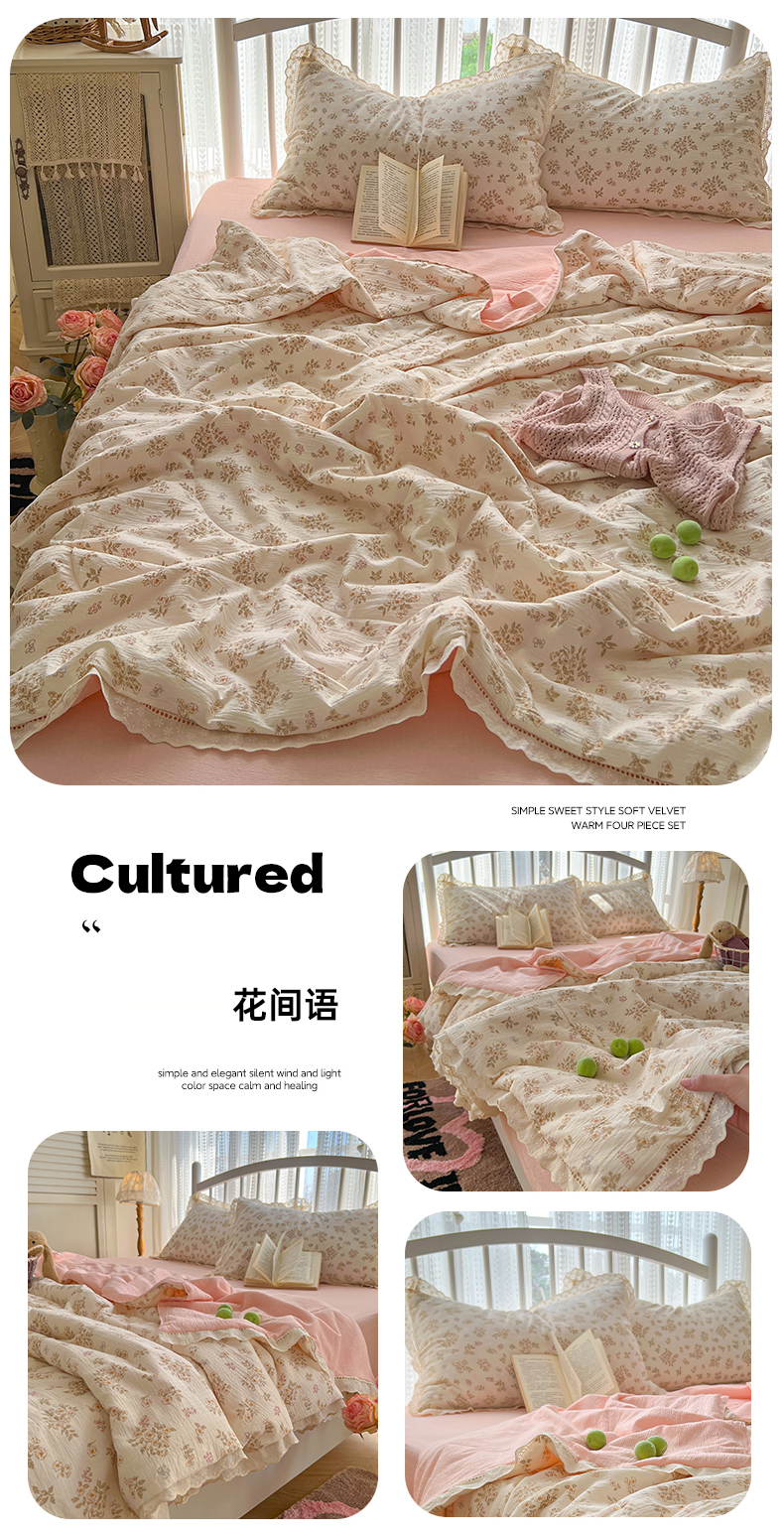 (总)港岛妹妹 2026新款仿棉云柔纱韩版双花边四件套,花边-知秋,花边-禾时,花边-花影,花边-桔夏,花边-萌兔花园,花边-葡萄园,花边-兔兔小姐,花边-兔薇薇,花边-小草莓,花边-樱桃枝枝,花边-枝影,花边-枝枝草莓