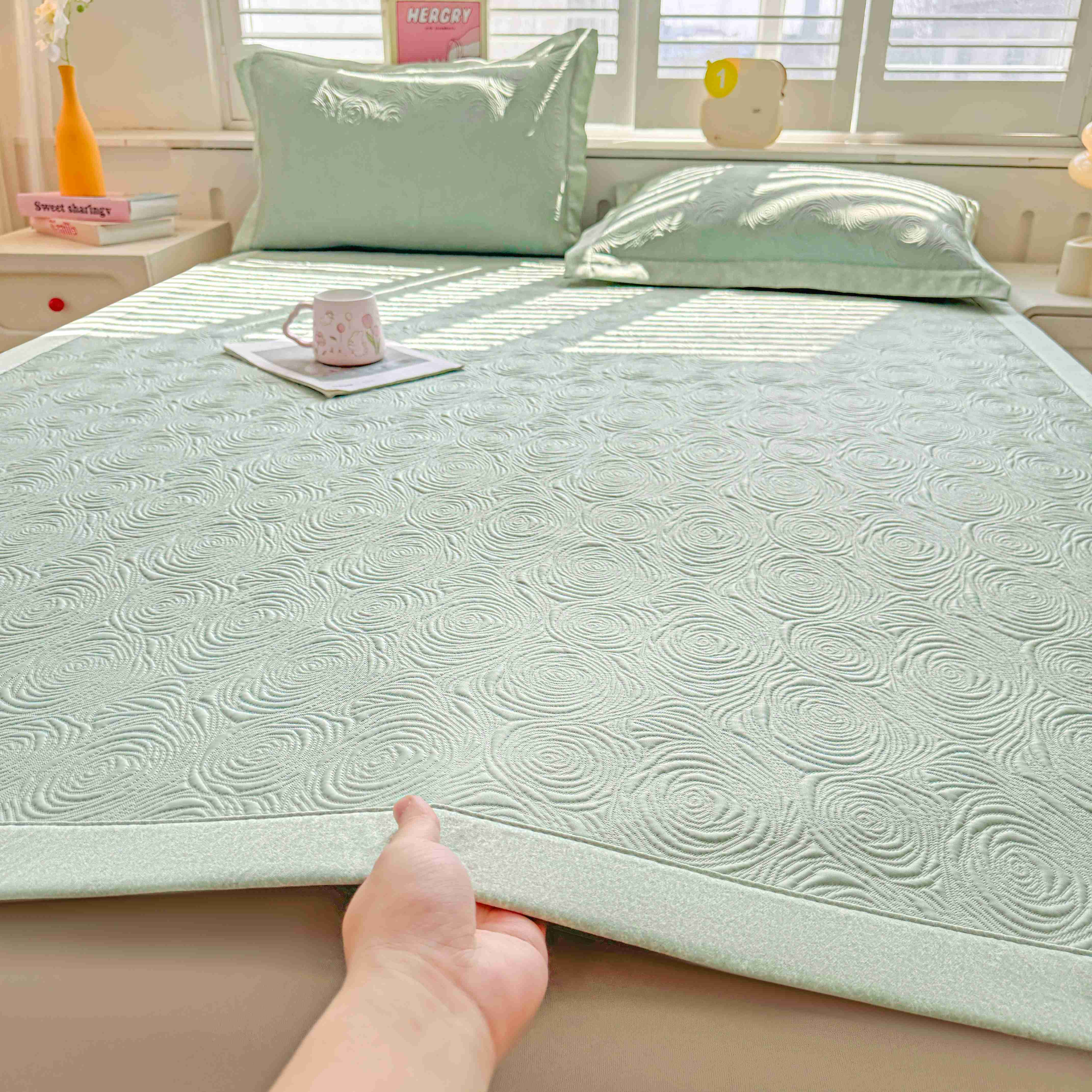商品名称:席匠 2026新款云柔玫瑰系列平铺款床裙款凉席席子 湖水蓝-床裙款