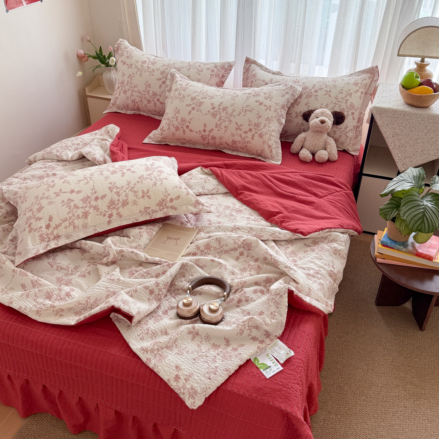 (总)禾沐 2026新款泡芙棉泡芙纱夏被四件套,爱心点点,波点,费尔岛小狗,古典格,红果兔兔,花间娃娃,灰爱心,丽莎,栗色木马纹,蜜桃小兔,描线猫,柔诗意,甜桃心,星芒凯蒂,秀妍,只闻花香,仲夏,组合