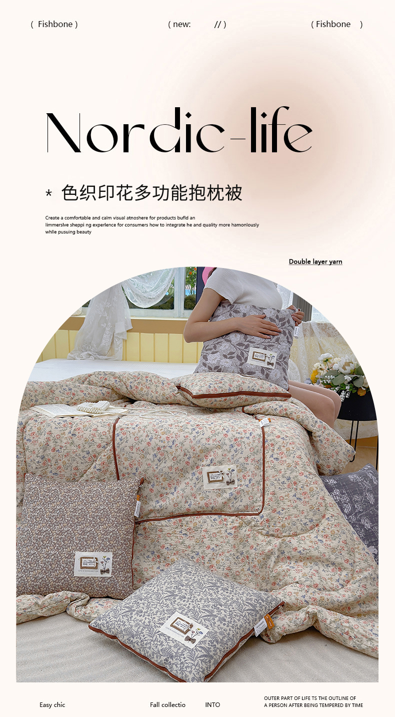 商品名称:宝马家纺(原梦童画) 2026新款色织云舒棉印花轻奢款抱枕被 镜花缘