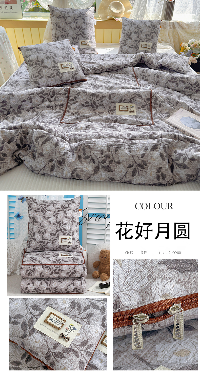 (总)宝马家纺(原梦童画) 2026新款色织云舒棉印花轻奢款抱枕被,浓情蜜意,春慕,花海,花好月圆,镜花缘