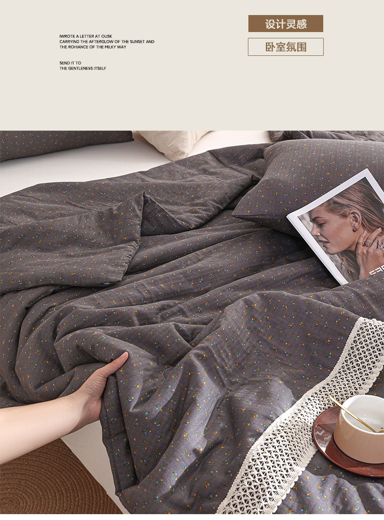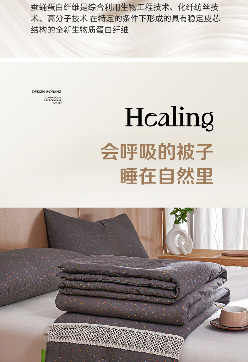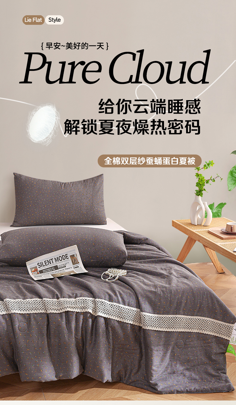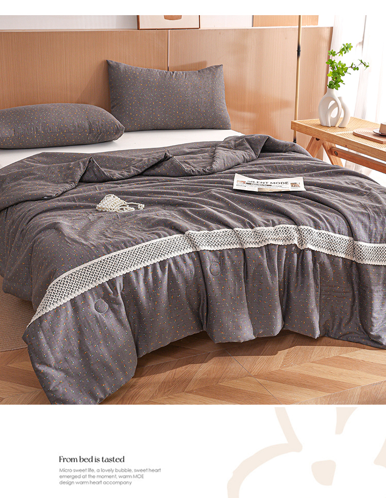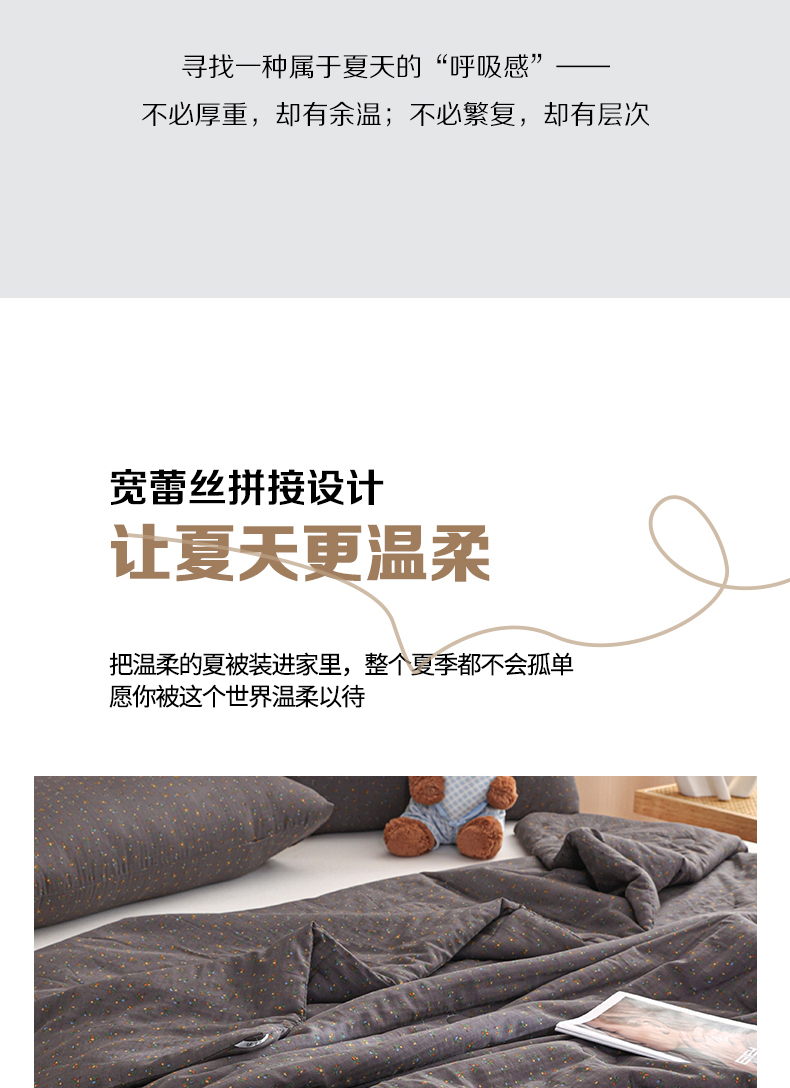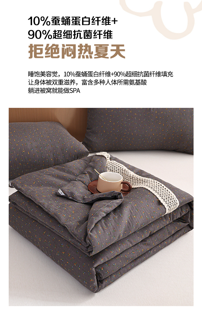 商品名称:尊妙被业 2026新款全棉双层纱蚕蛹蛋白抗菌夏被被子被芯 素棠影-灰