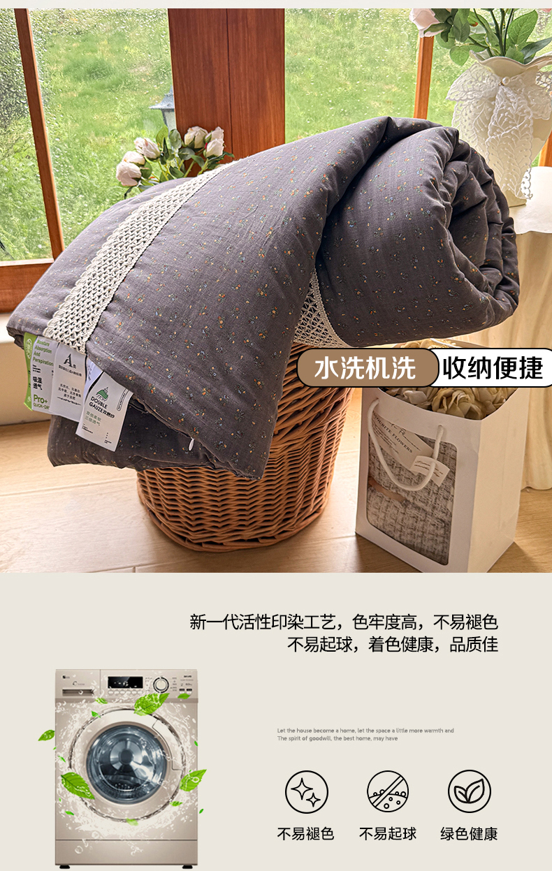 (总)尊妙被业 2026新款全棉双层纱蚕蛹蛋白抗菌夏被被子被芯,雏菊-灰,花影,锦织-米,蔓纱-灰,素棠影-灰,细枝漫野