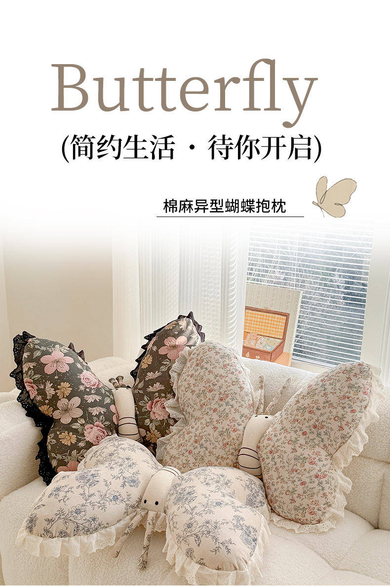 商品名称:(总)蔻眠 花边款棉麻刺绣蝴蝶抱枕靠枕异型枕芯