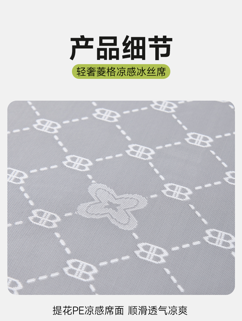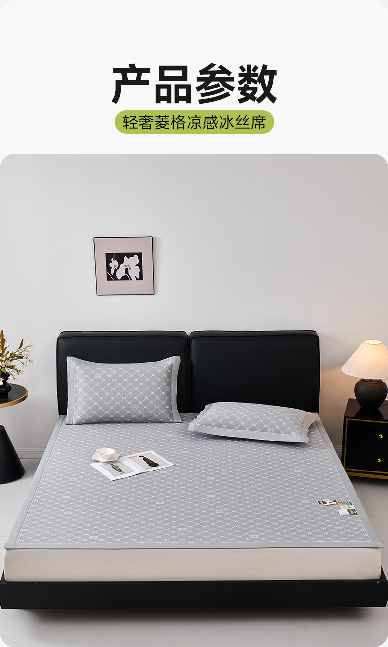 (总)小牛席业 2026春夏新款轻奢菱格提花冰丝席凉席席子空调软席,粉色,灰色,蓝色,抹茶,香槟