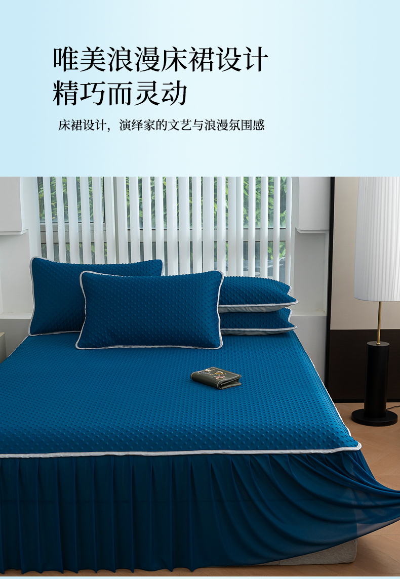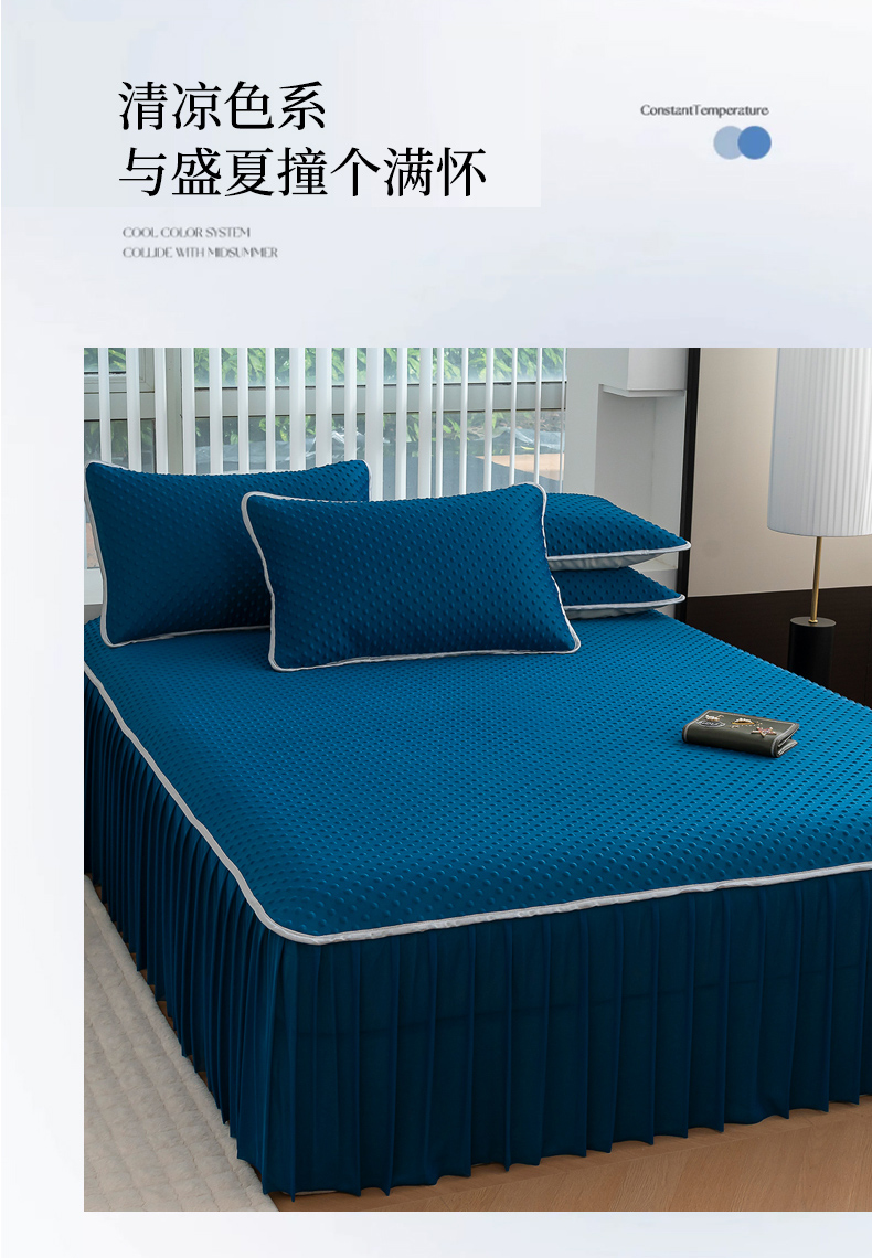商品名称:默忆 2026新款3DA类直播网红热款凉感丝冰豆豆三明治复合床裙款凉席三件套 天空蓝
