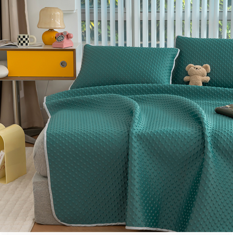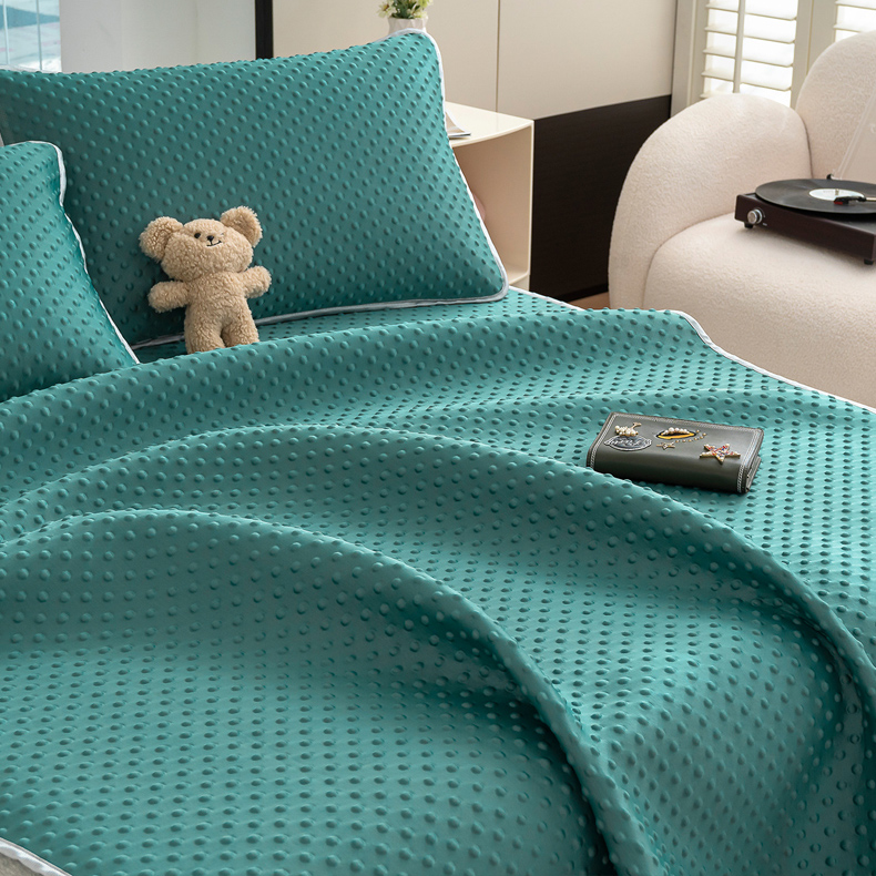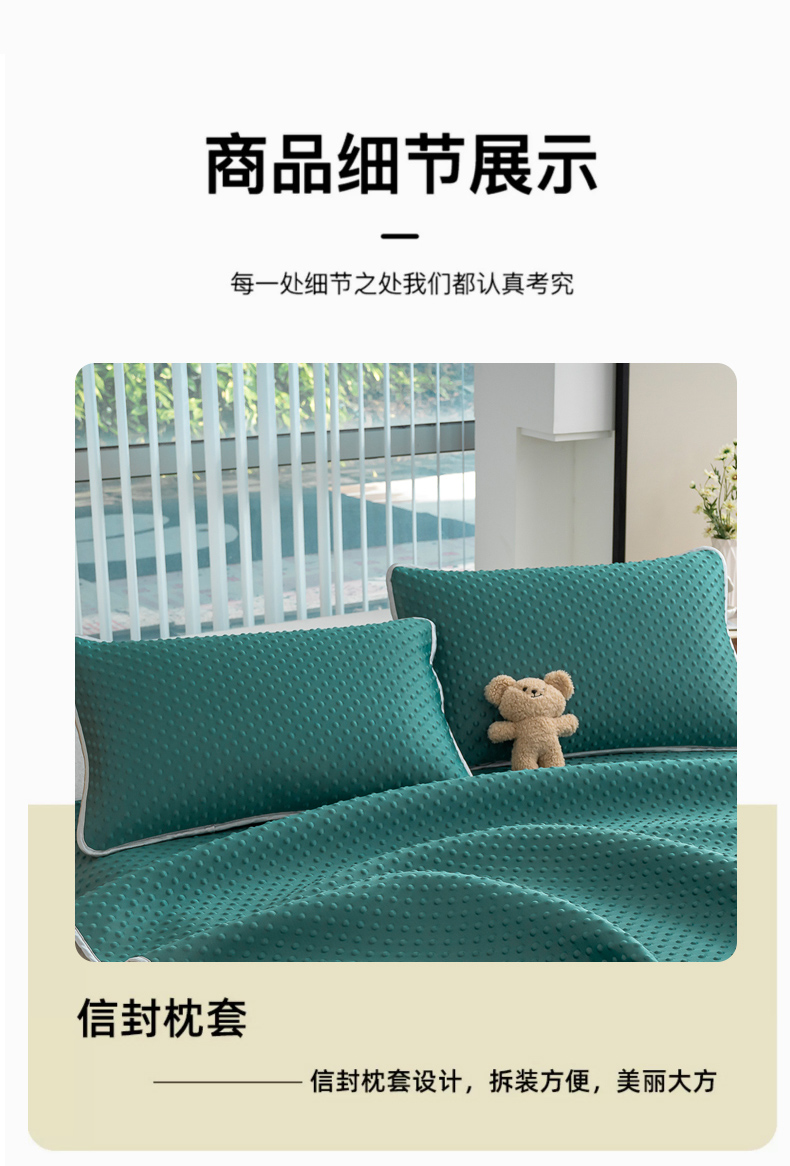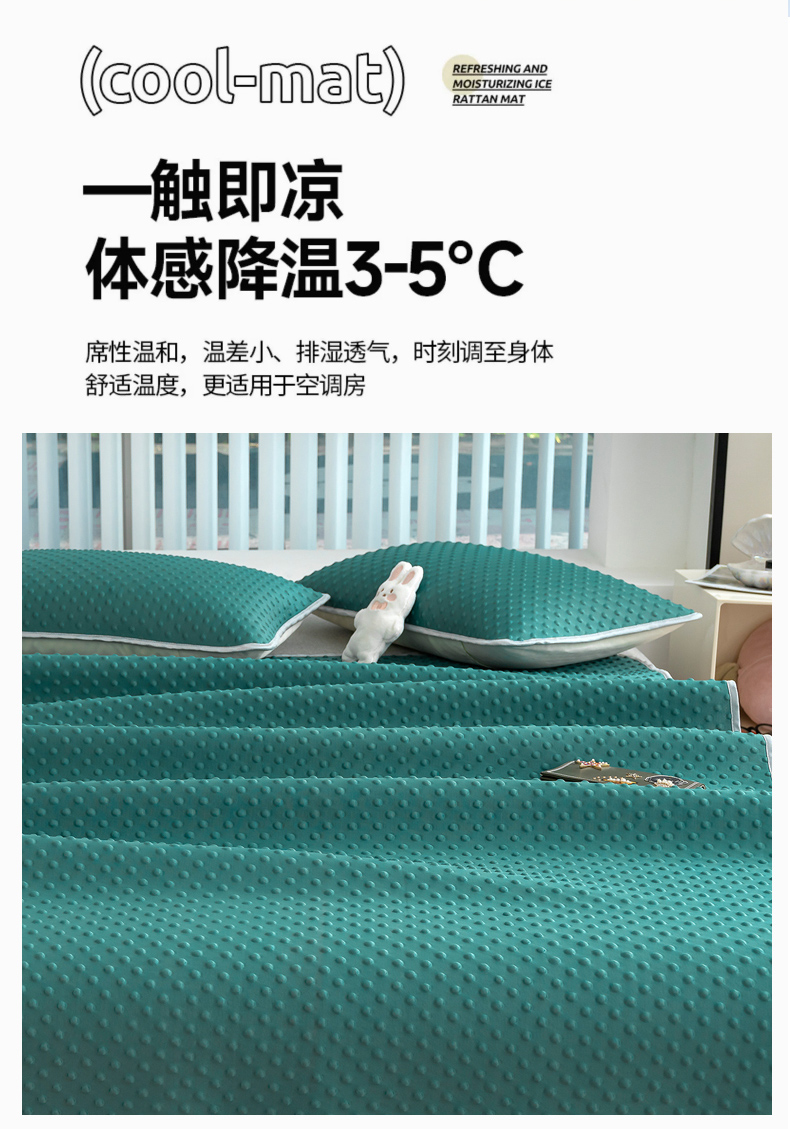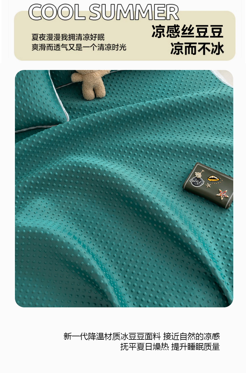 商品名称:默忆 2026新款3D轻奢风A类直播网红热款凉感丝冰豆豆三明治复合床单款凉席两件套三件套 墨绿