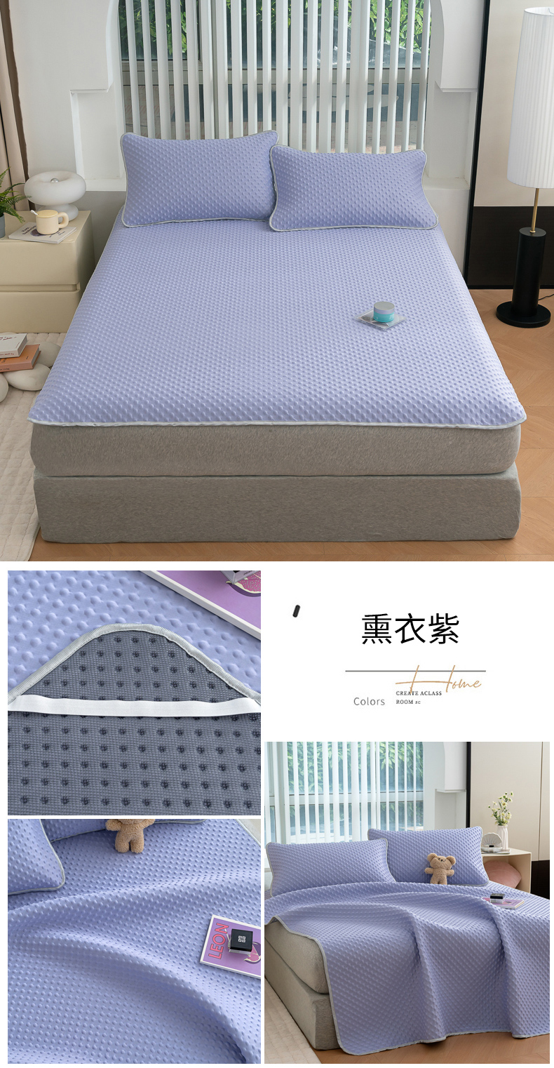 (总)默忆 2026新款3D轻奢风A类直播网红热款凉感丝冰豆豆三明治复合床单款凉席两件套三件套,贵族灰,果绿,孔雀蓝,墨绿,时尚粉,天空蓝,香芋紫,熏衣紫