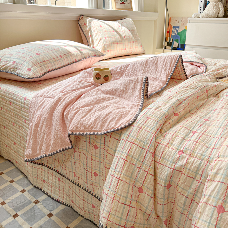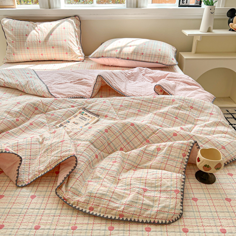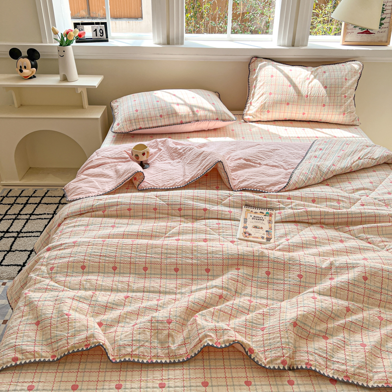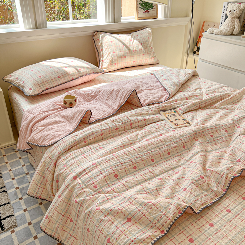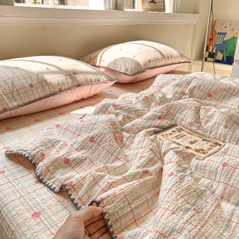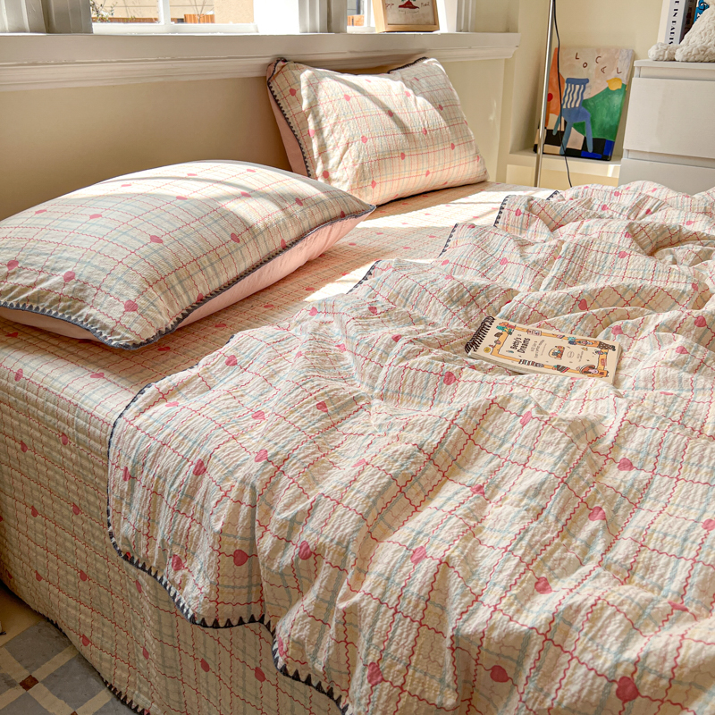禾沐 2026新款泡芙纱三角针床盖夏被四件套 格格心