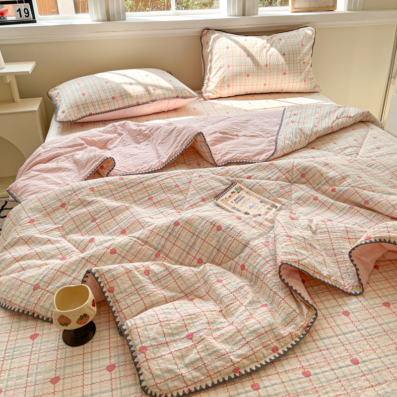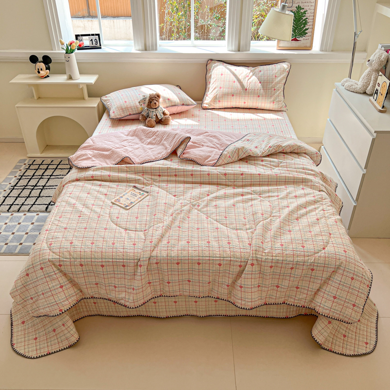 (总)禾沐 2026新款泡芙纱夏被四件套简单款,波点,粉黛,粉色小心心,格格心,格系萌宠,花间娃娃,花镜人偶黄,花序,灰猫头,旧街星星,咖爱心,咖豹纹,兰爱心,浅川纹,森林描绘,田园兔,只闻花香,紫陌,KT猫,古典格,浅夏花信