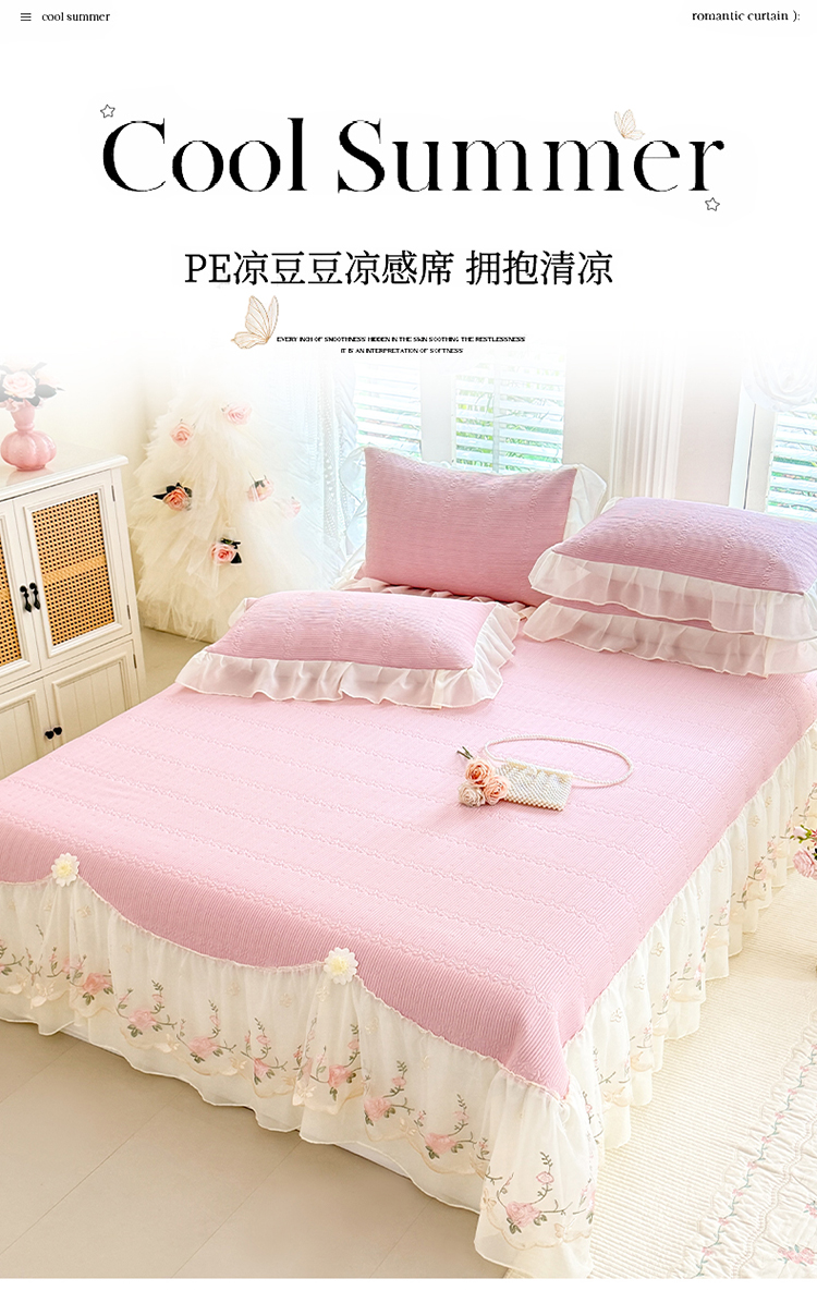 (总)苏米娜家纺SUMINA 2026新款PE高分子弯边工艺床裙款凉席三件套-可心,可心-冰川兰,可心-粉黛,可心-奶油白,可心-清新绿