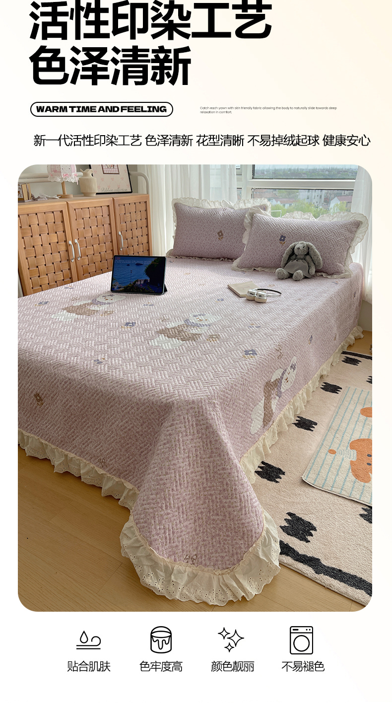 • 91家纺网 家纺一手货源 找家纺 爱彼家纺 2026新款印花泡芙棉花边床盖三件套-泡芙床盖 花边-含花诗放