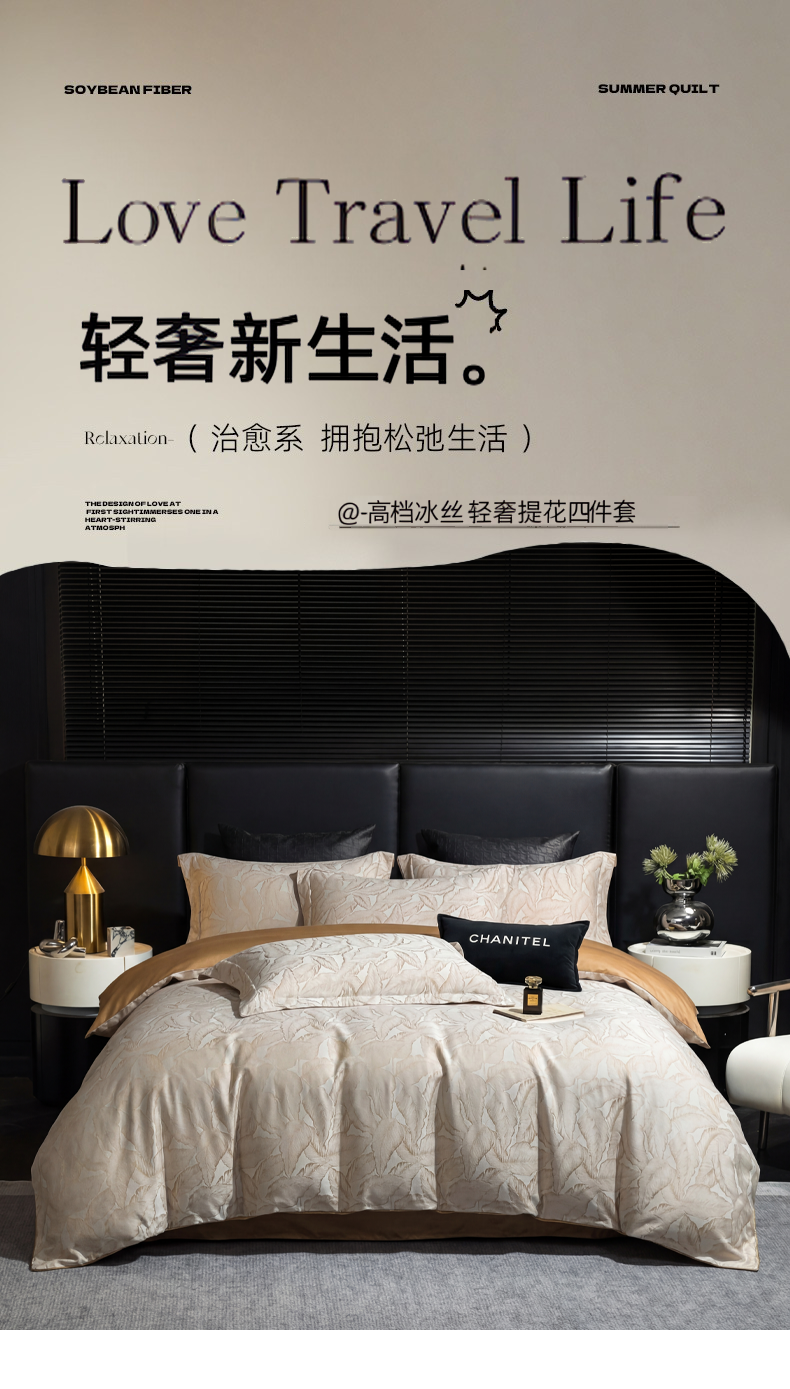 当前位置: 91家纺网 > 商品网购 > 床品套件 > 四件套 > 其它四件套 > 悦织湾家纺 2026新款轻奢冰丝提花四件套凉感夏秋床上用品三四件套 金菱奢境