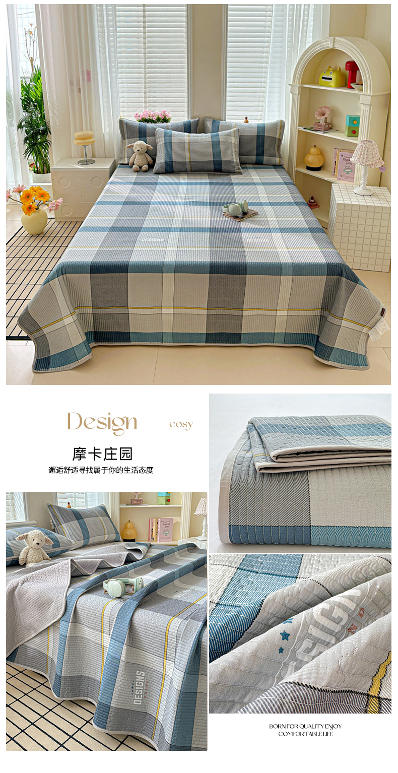 文黛家居 2026新款全棉夹棉印花床盖三件套 摩卡庄园