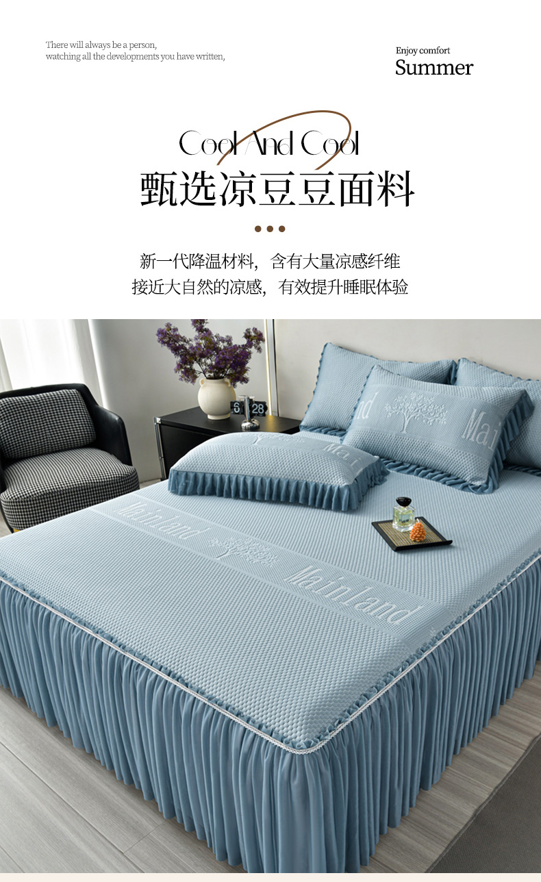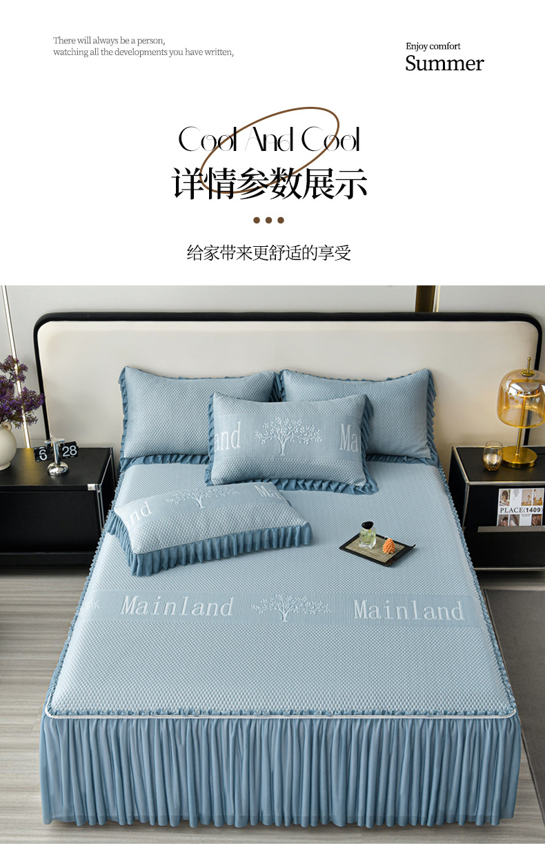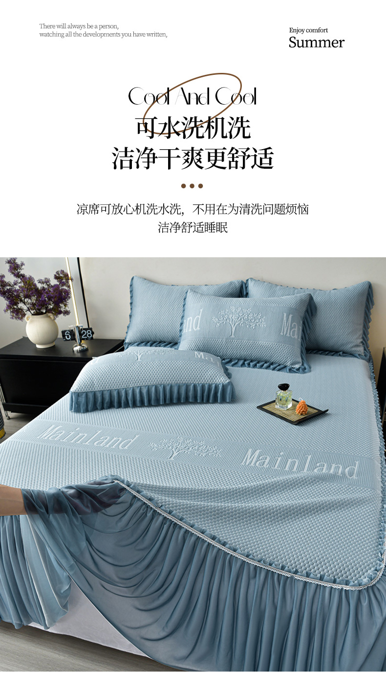星窝家纺 2026新款冰豆豆床裙款凉席 蓝调树影