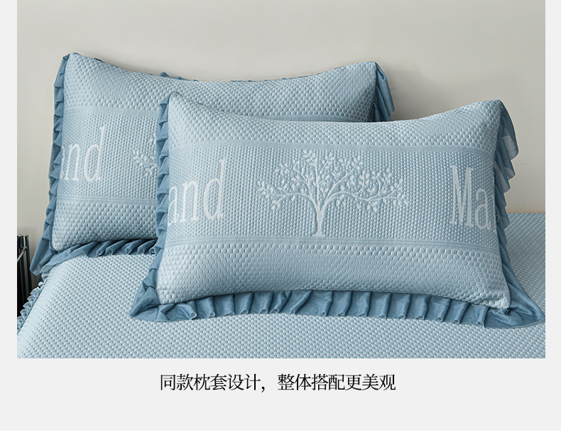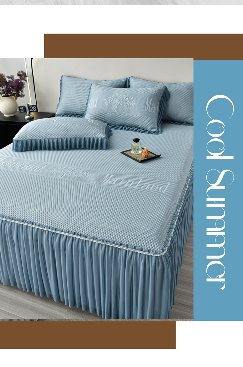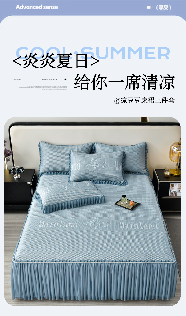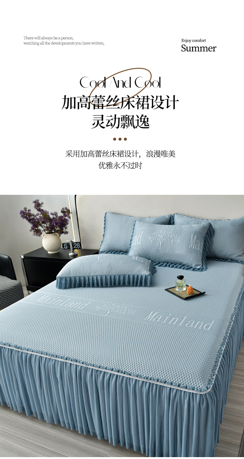星窝家纺 2026新款冰豆豆床裙款凉席 蓝调树影