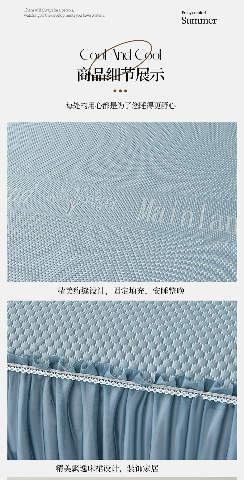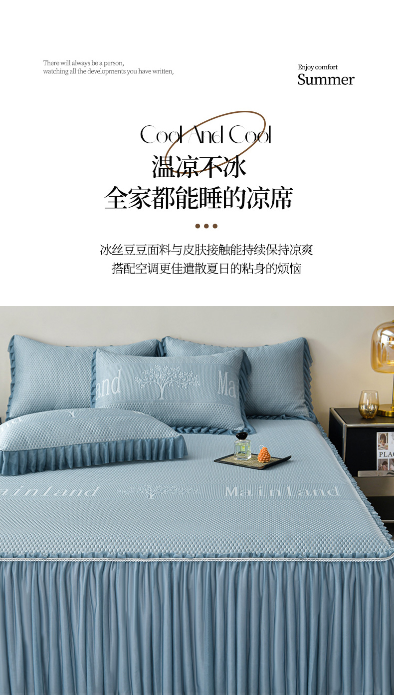 商品名称:星窝家纺 2026新款冰豆豆床裙款凉席 蓝调树影