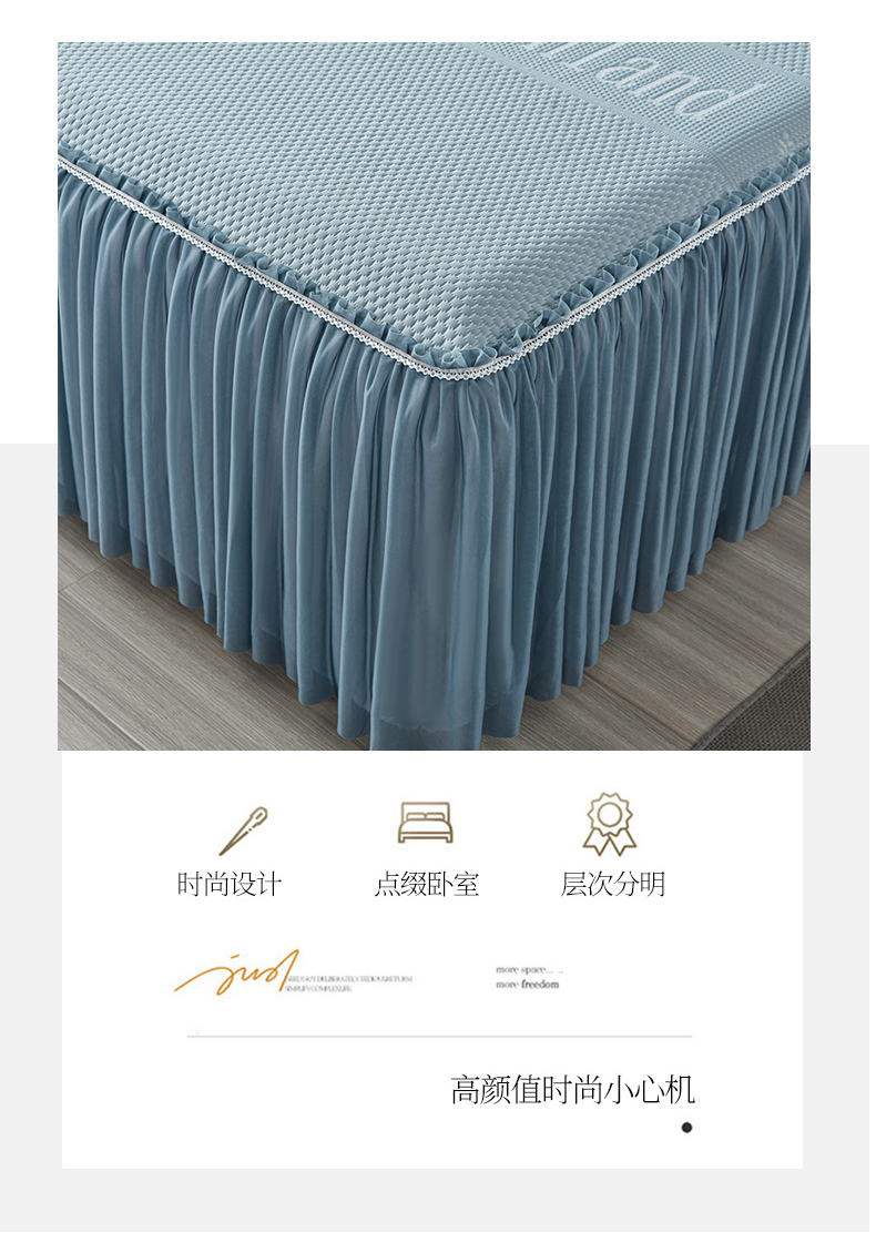 (总)星窝家纺 2025新款水洗棉花边床裙式多功能床盖三件套,经典豆绿,经典粉色,经典灰色,经典橘色,经典蓝色,经典奶白,经典紫色