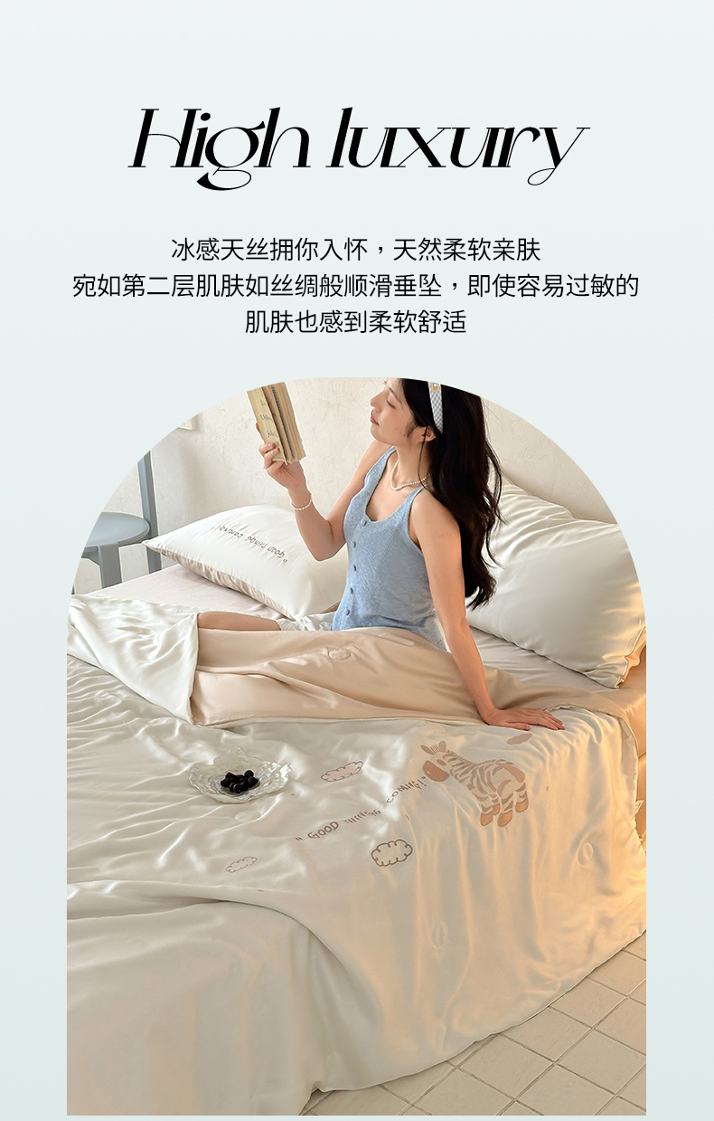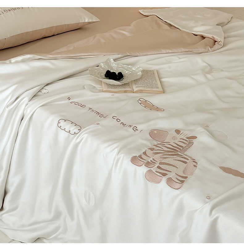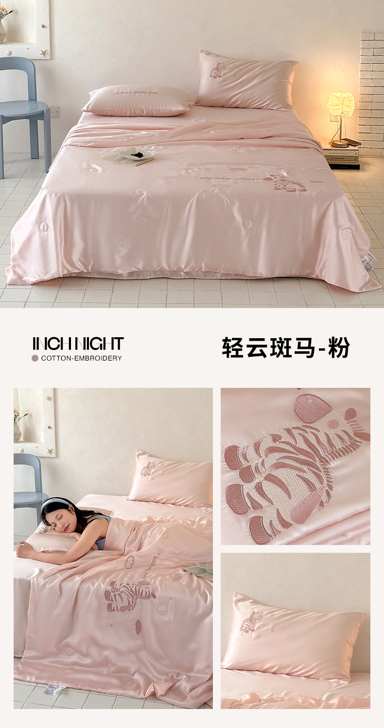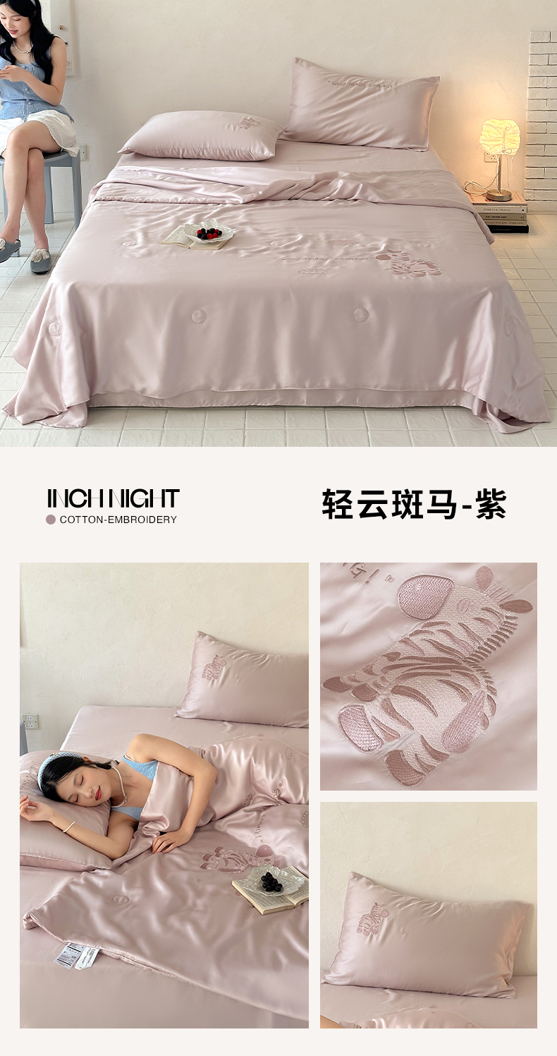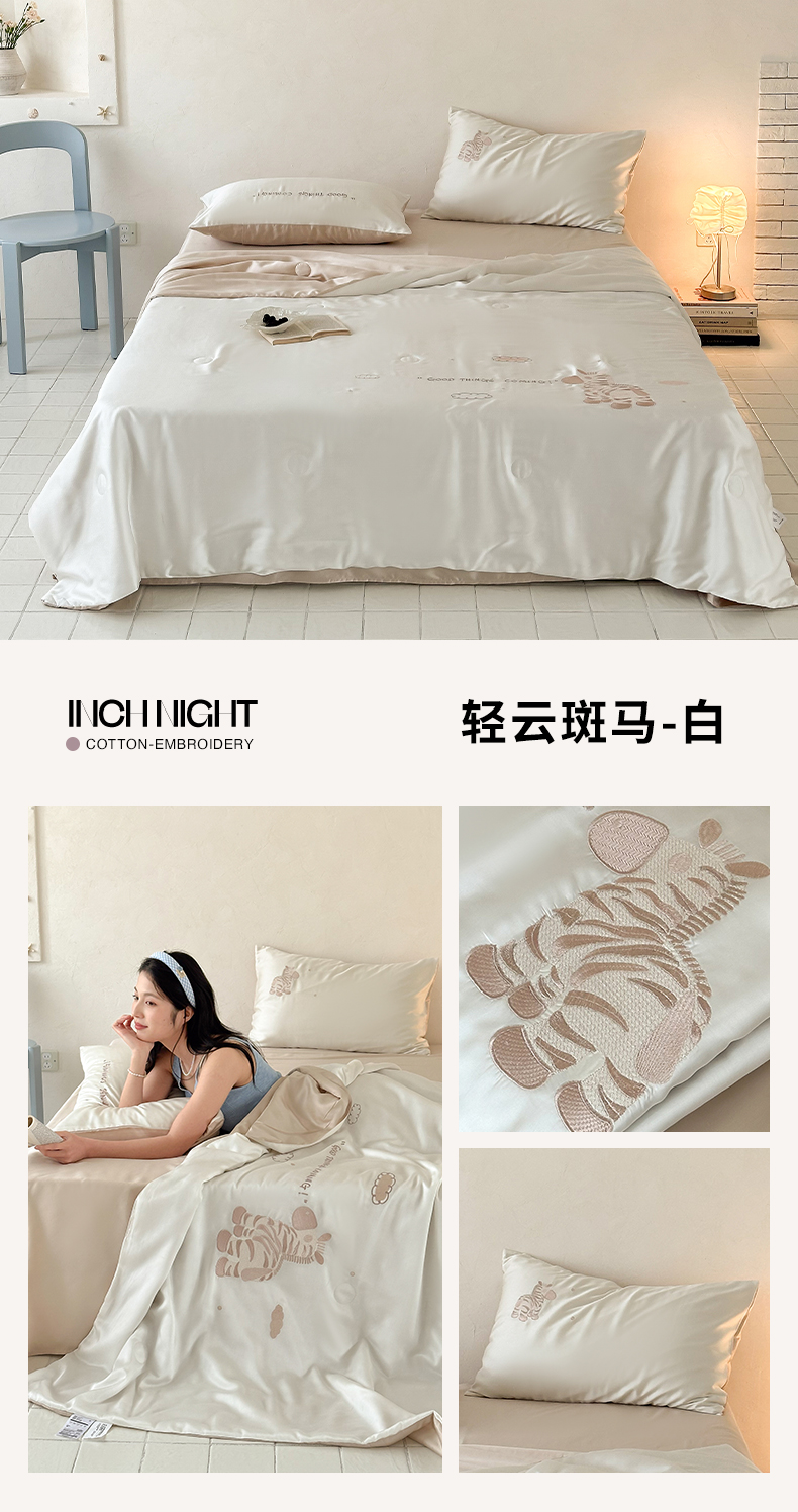 极简 2026新款天丝小马刺绣夏被四件套轻云斑马 轻云斑马-白