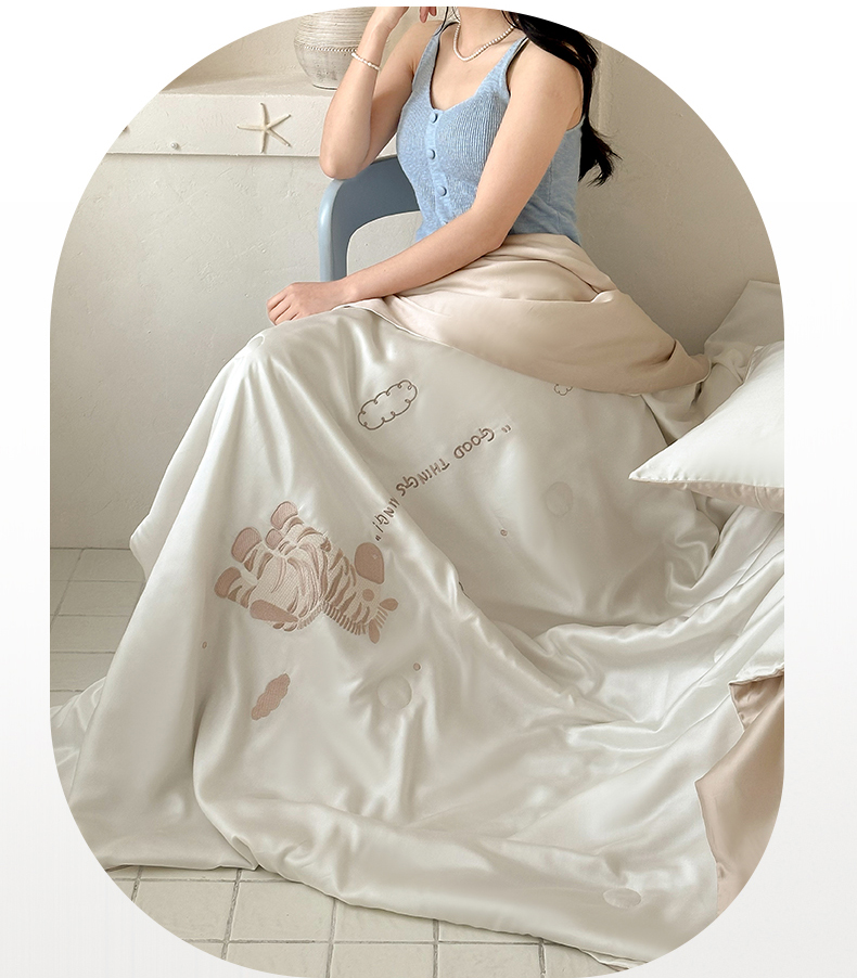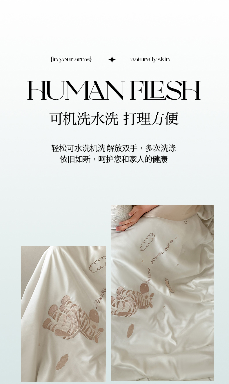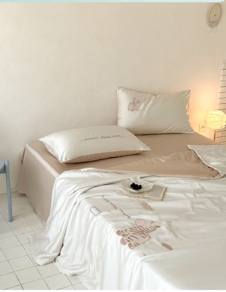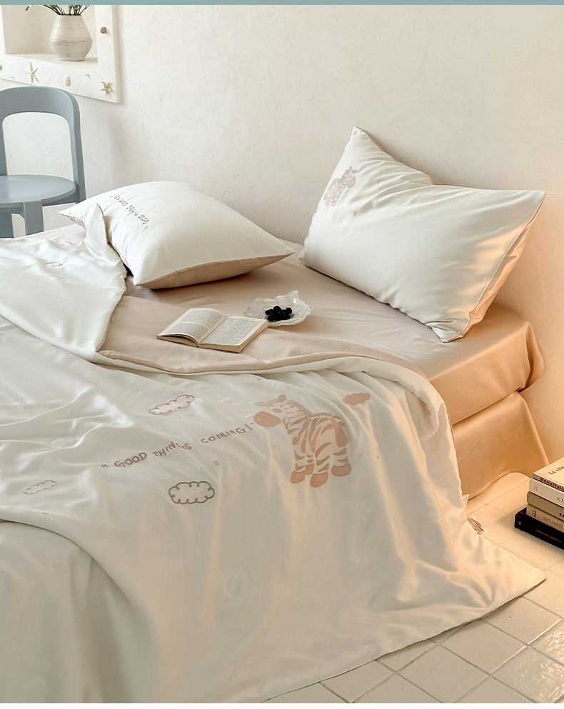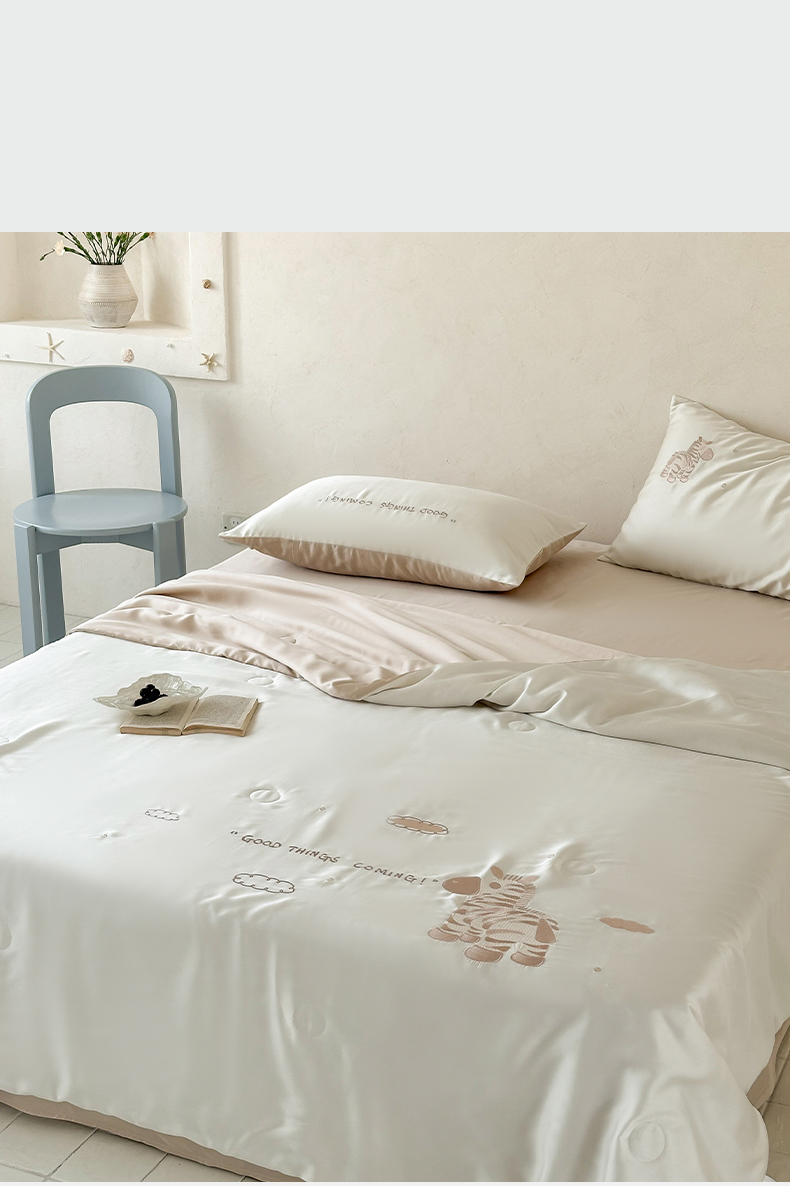 极简 2026新款天丝小马刺绣夏被四件套轻云斑马 轻云斑马-白