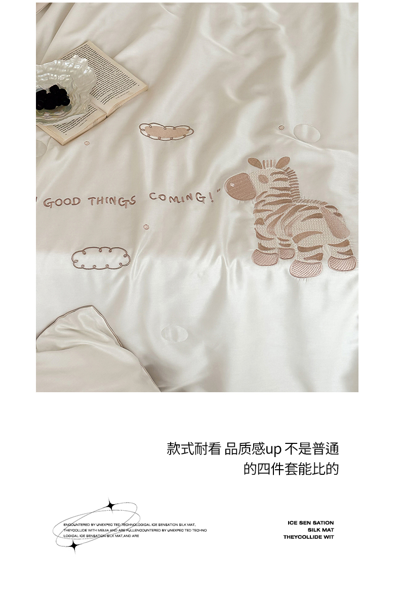 商品名称:极简 2026新款天丝小马刺绣夏被四件套轻云斑马 轻云斑马-白