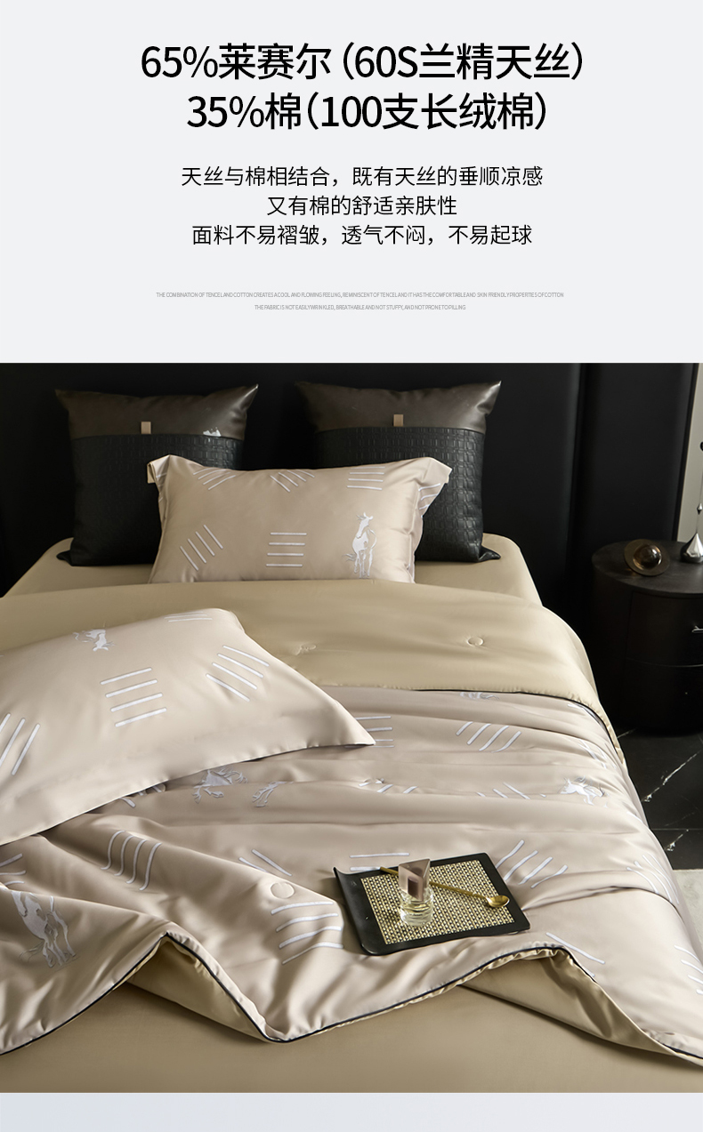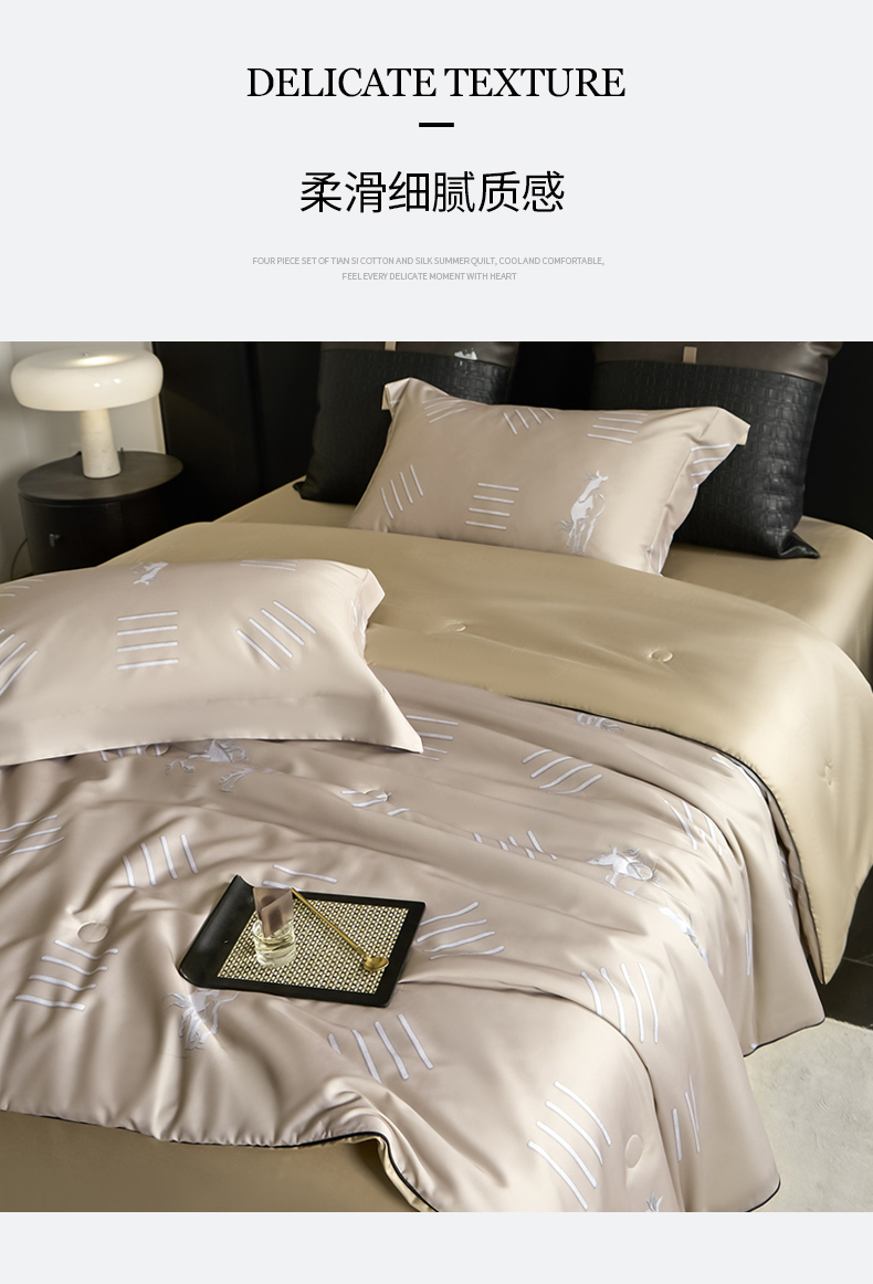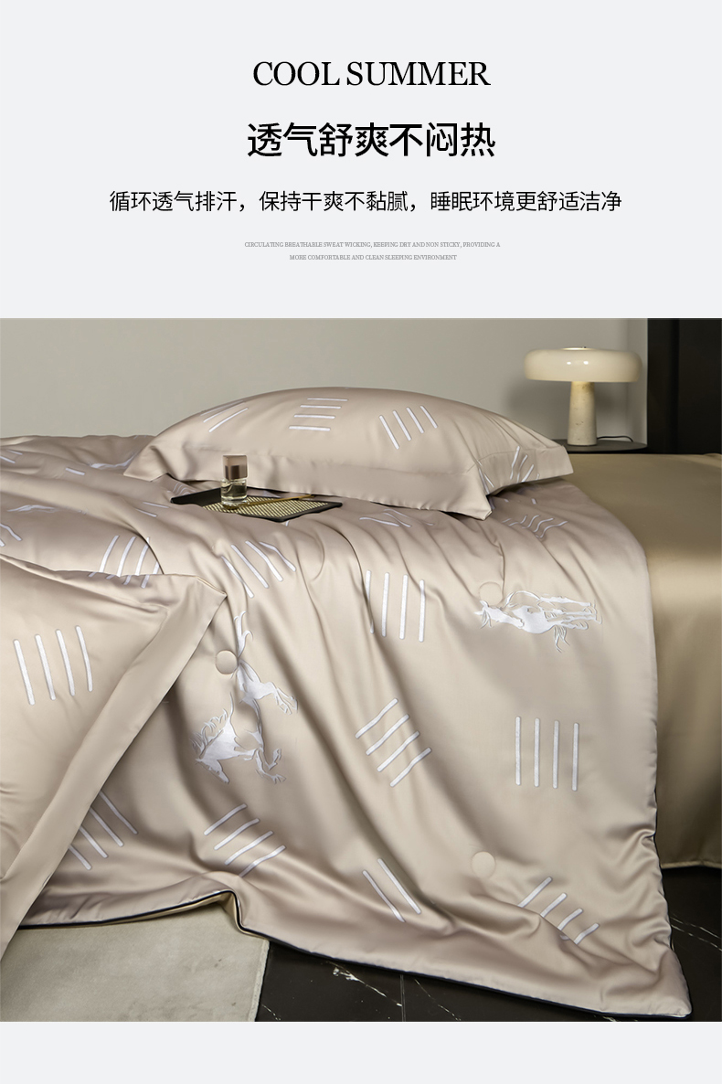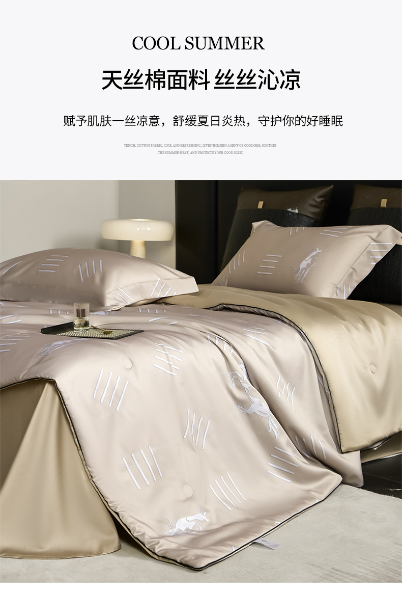 • 91家纺网 家纺一手货源 找家纺 (总)新方向 2026刺绣A类20%蚕丝天丝棉夏被四件套 65%60s兰精天丝 35%100支长绒棉-科迪,科迪-朦胧灰,科迪-香槟