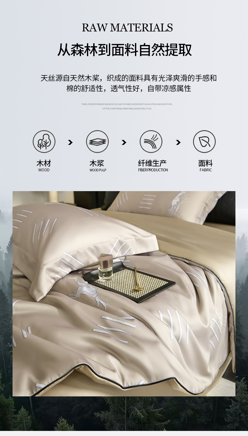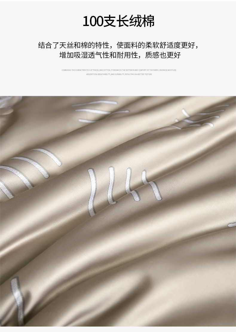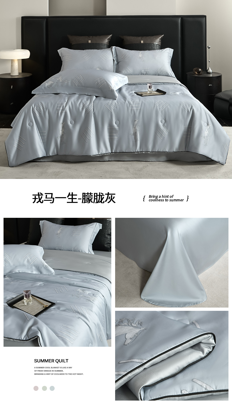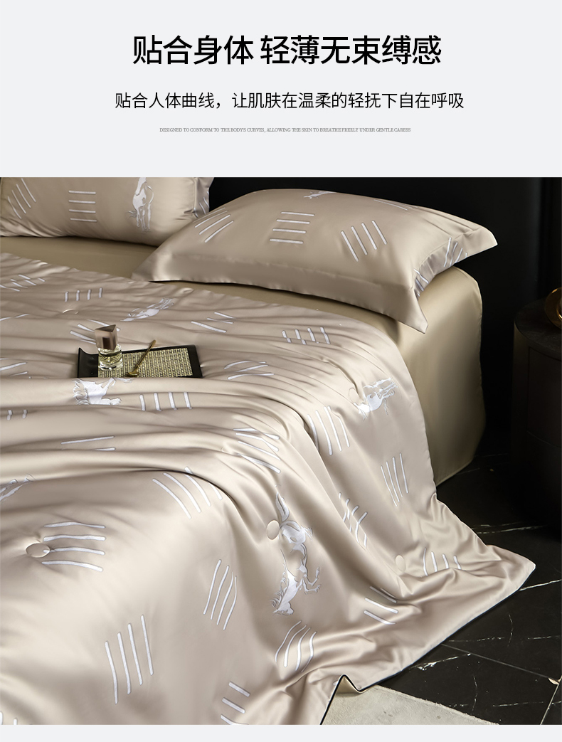 • 91家纺网 家纺一手货源 找家纺 (总)新方向 2026刺绣A类20%蚕丝天丝棉夏被四件套 65%60s兰精天丝 35%100支长绒棉-科迪,科迪-朦胧灰,科迪-香槟