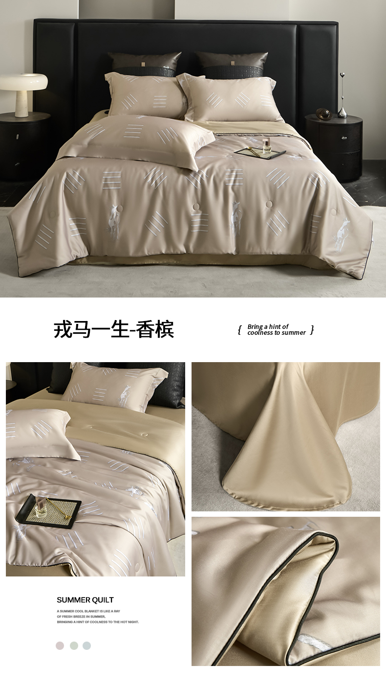 • 91家纺网 家纺一手货源 找家纺 新方向 2026新款数码印花A类20%蚕丝天丝棉夏被夏凉被空调被四件套-戎马一生 戎马一生-香槟