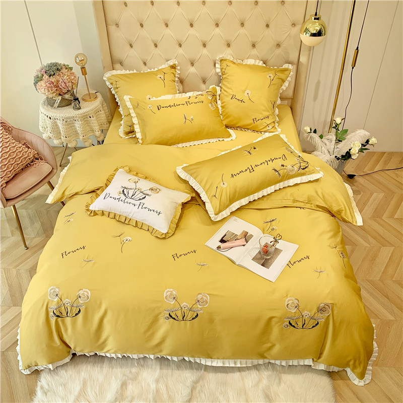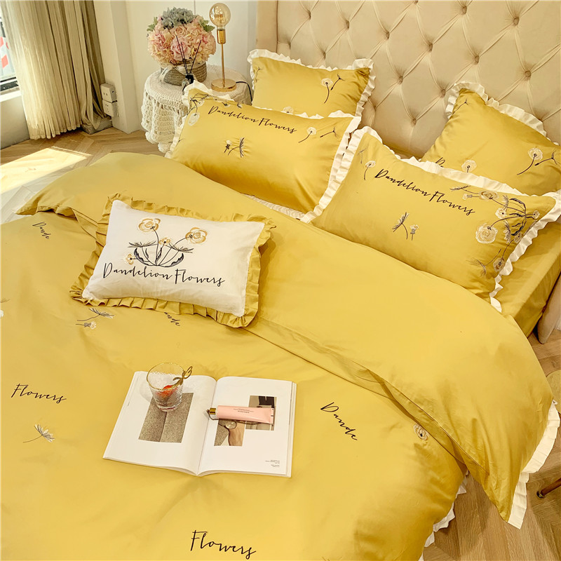 当前位置: 91家纺网 > 商品网购 > 床品套件 > 四件套 > 长绒棉四件套 > 馨蕊家居2021新款60长绒棉绣花四件套蒲公英的约定-柠檬黄