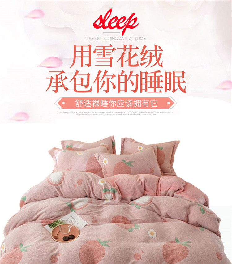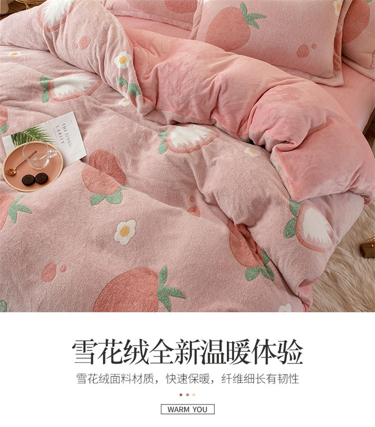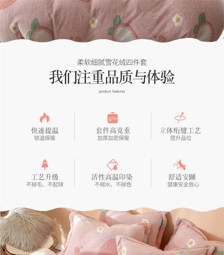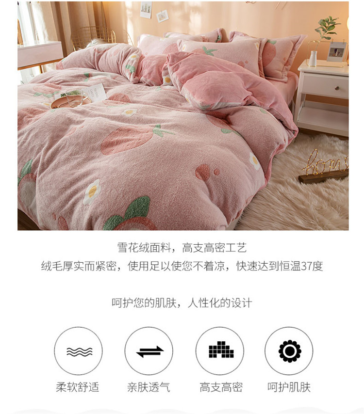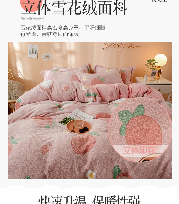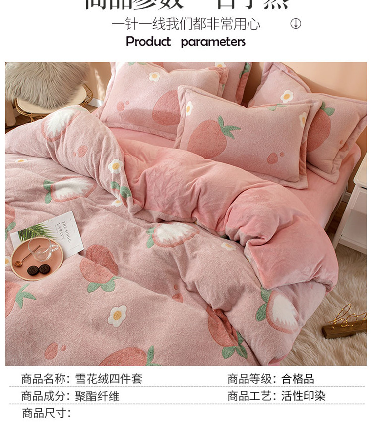 商品名称:川悦生活 2019新款立体雪花绒四件套 小草莓粉