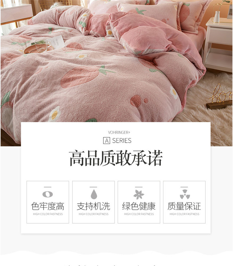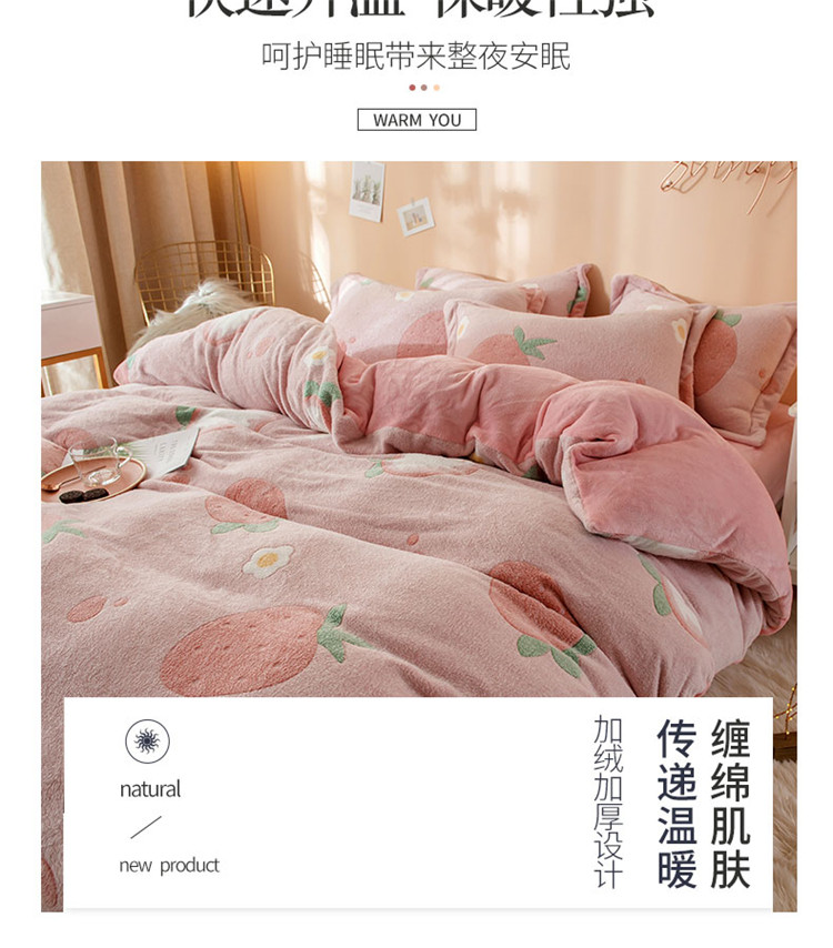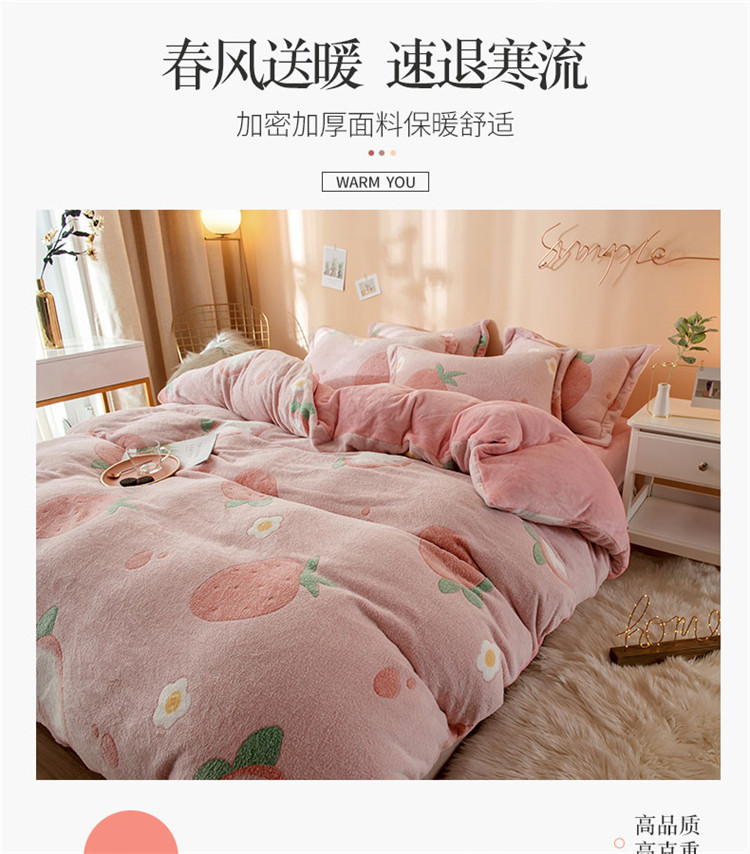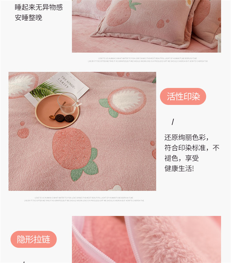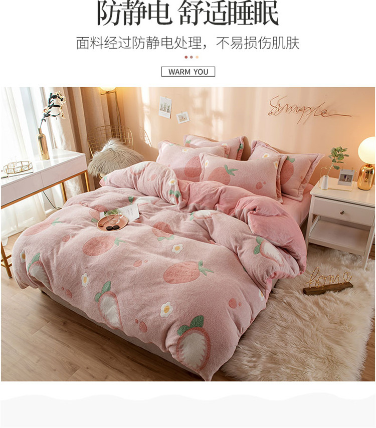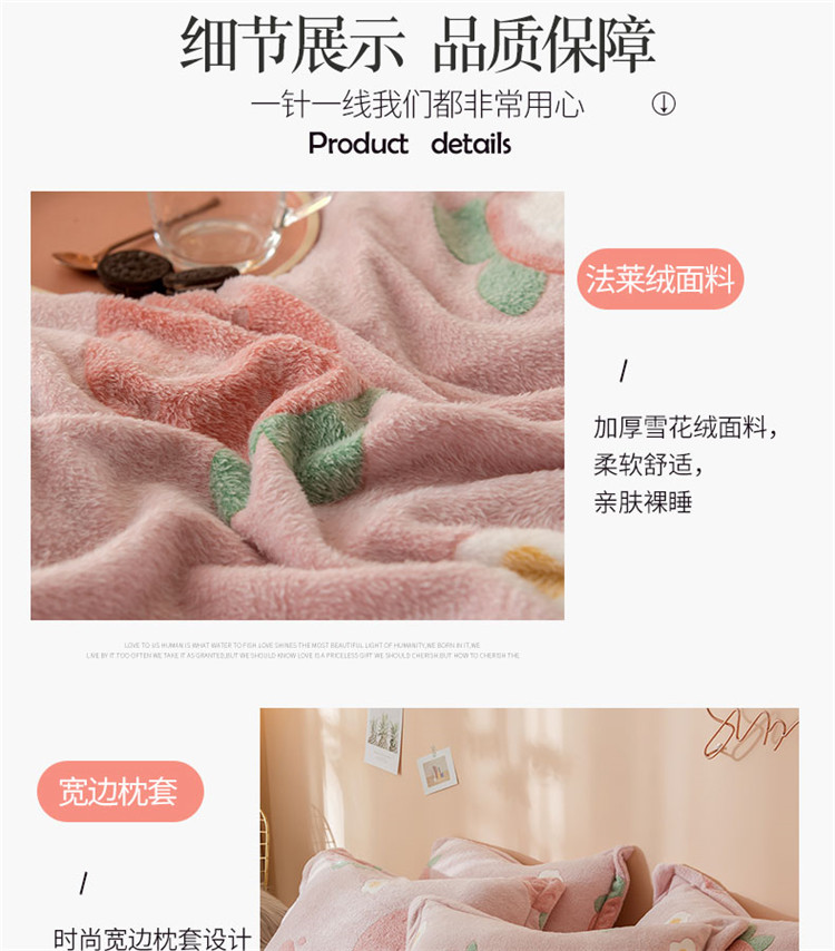商品名称:川悦生活 2019新款立体雪花绒四件套 小草莓粉