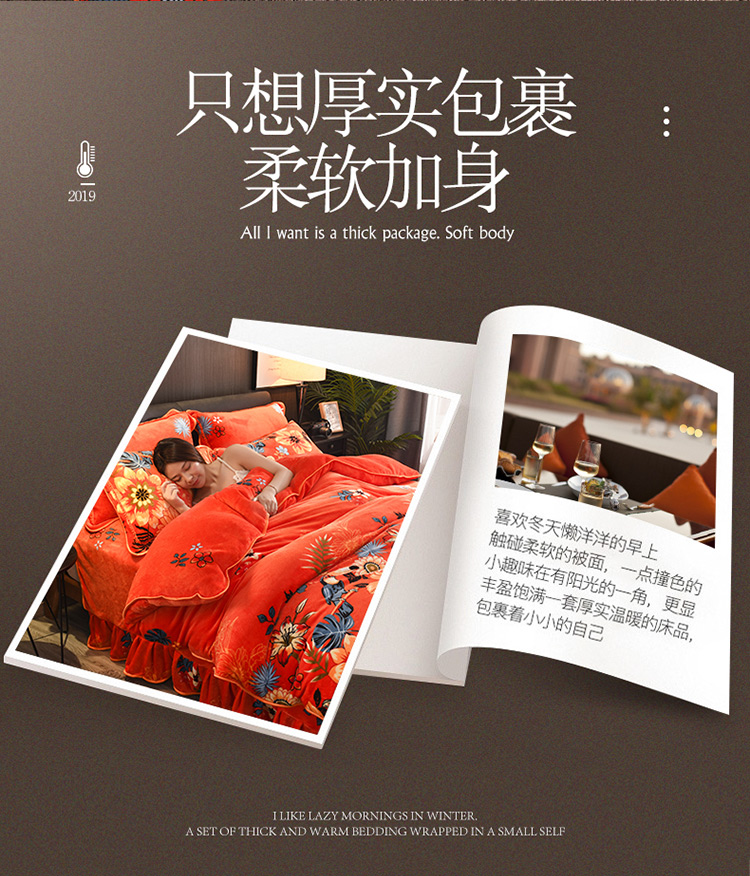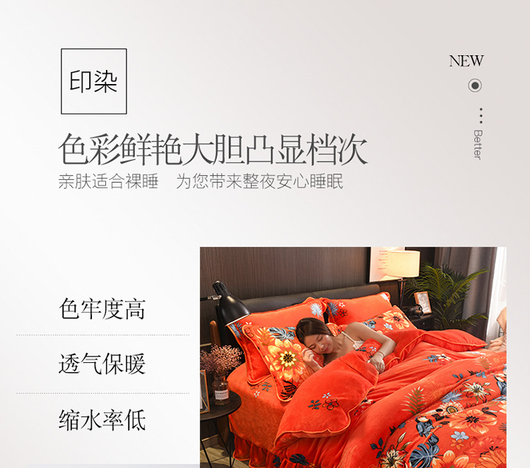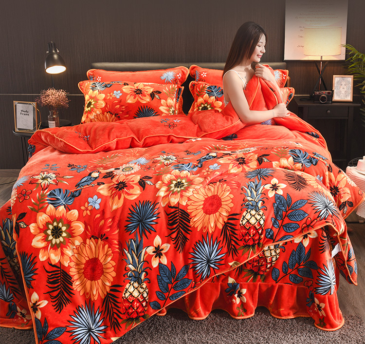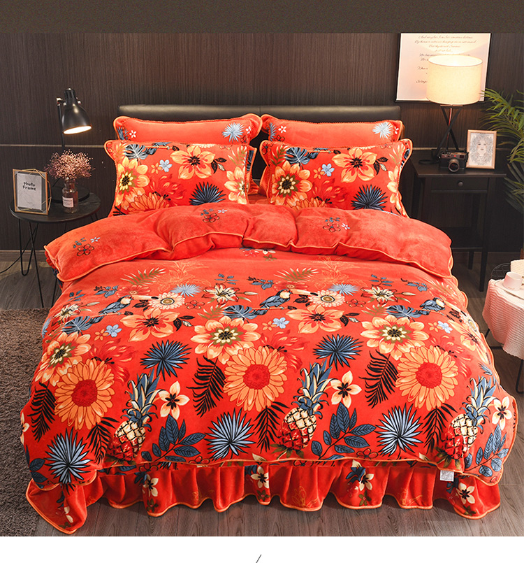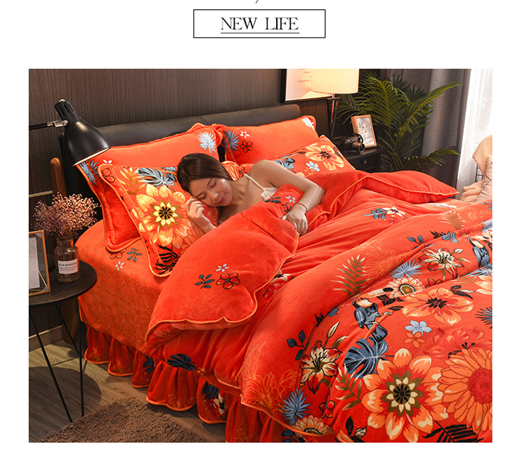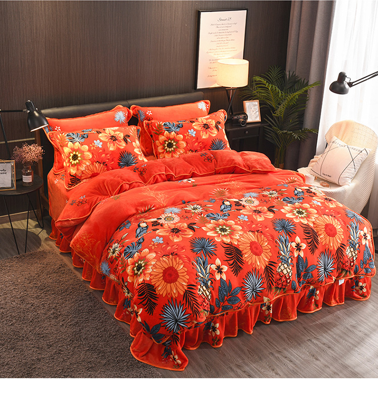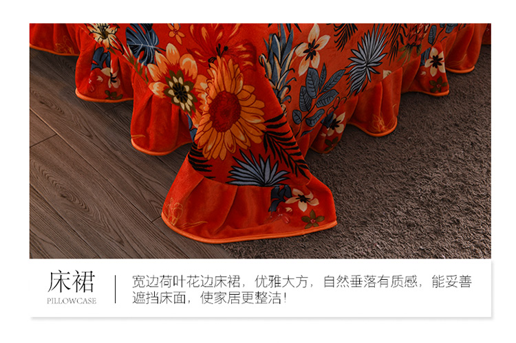 佰诗特新品牛奶金貂绒 水晶床裙款加厚貂狐绒法兰绒法莱绒四件套