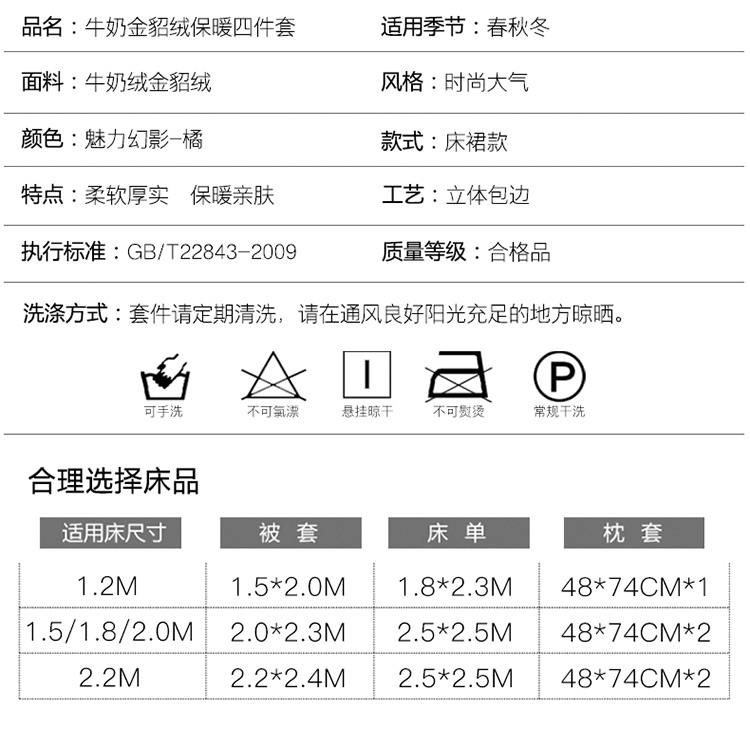 商品名称:佰诗特新品牛奶金貂绒 水晶床裙款加厚貂狐绒法兰绒法莱绒四件套