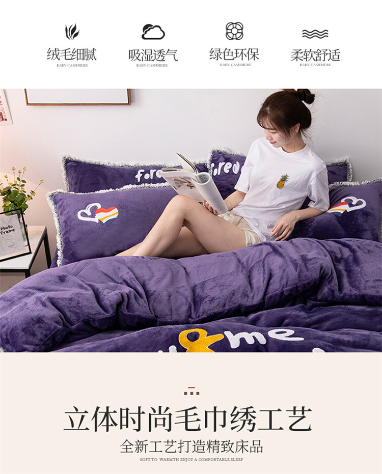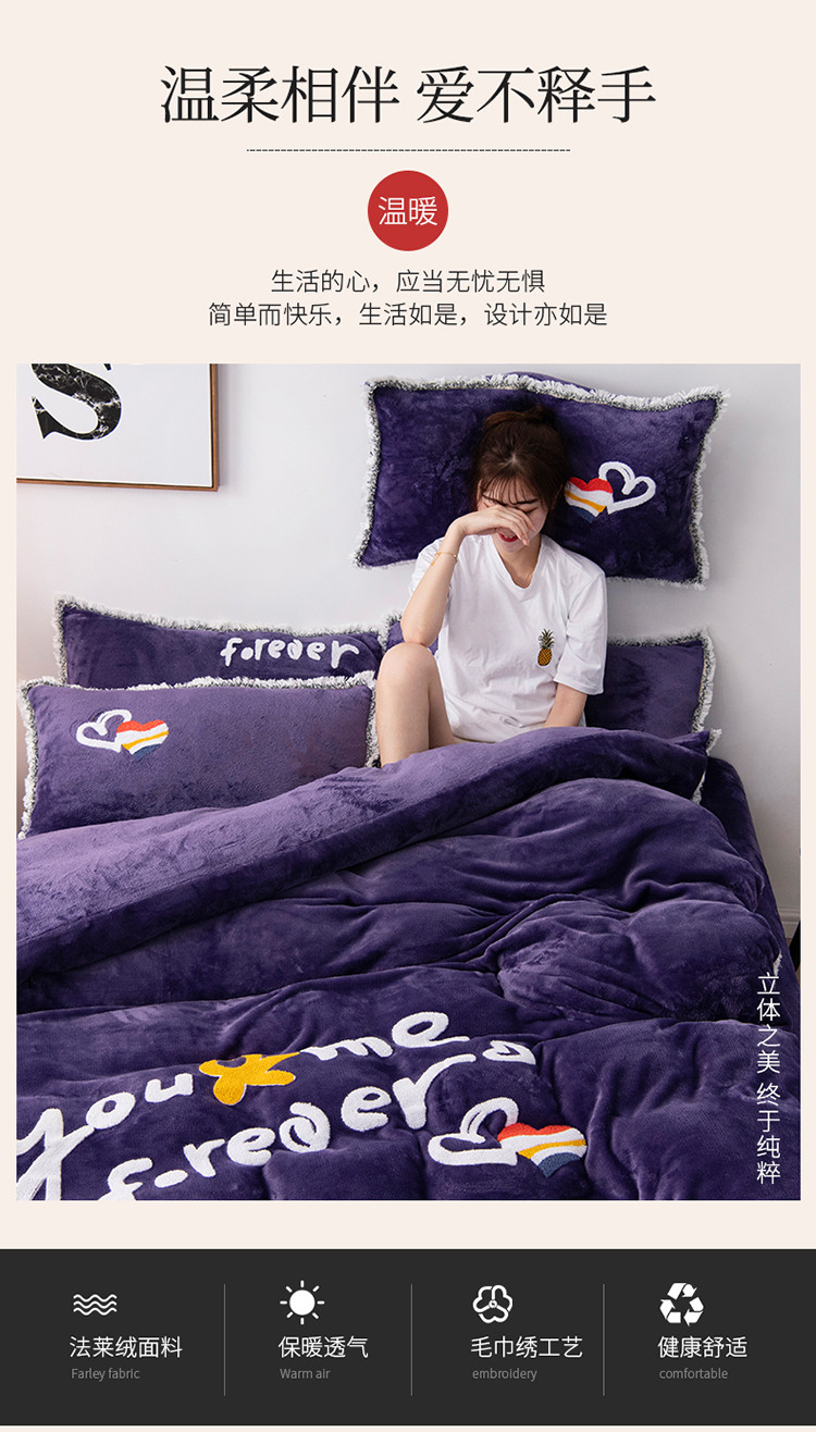 雨洋家纺 2019新款毛巾绣四件套 紫罗兰