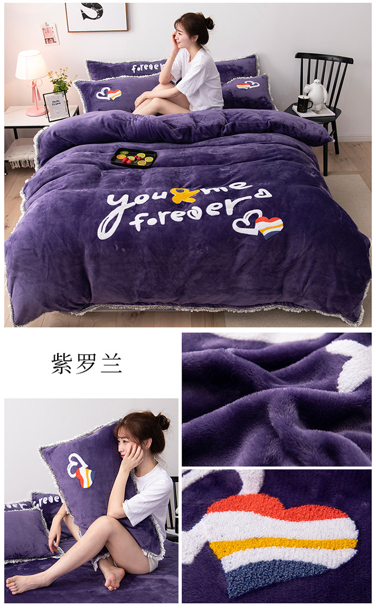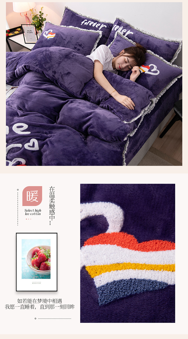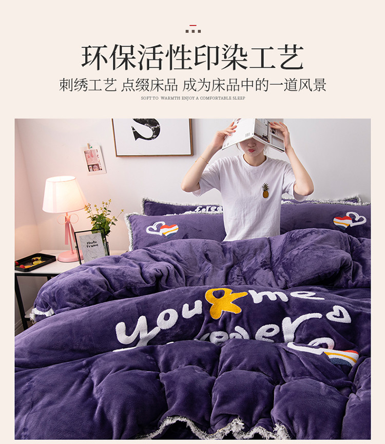 雨洋2025新款加厚保暖8.5斤牛奶绒金貂婴儿绒四件套 心心相印,心心相印