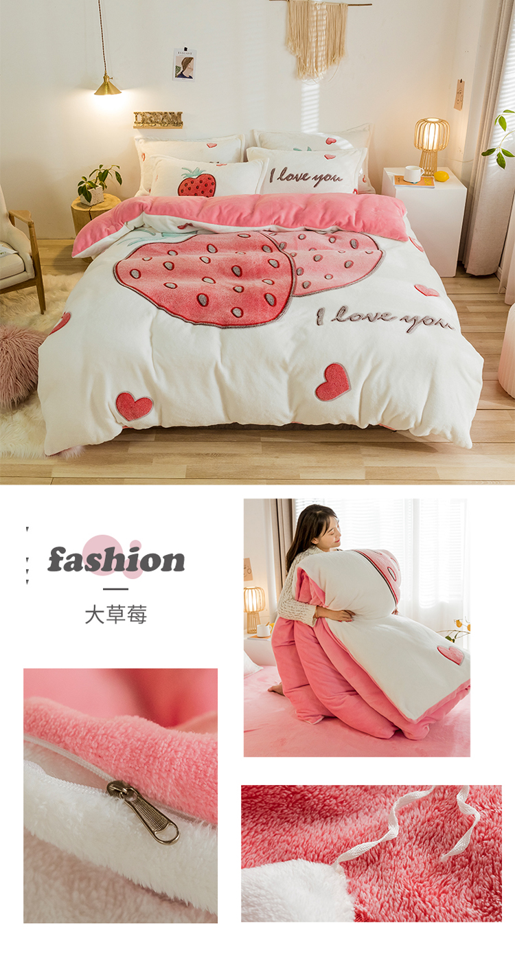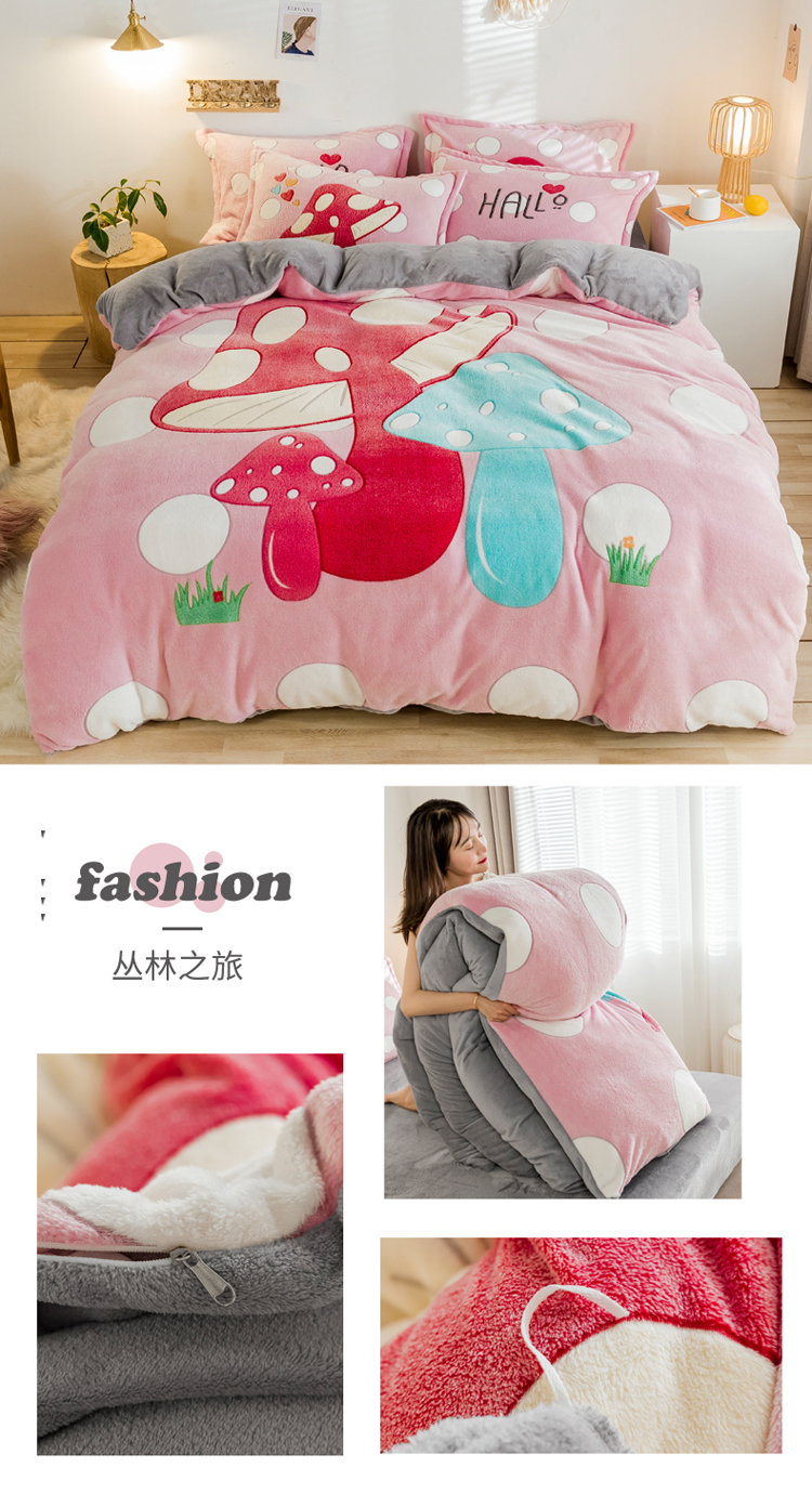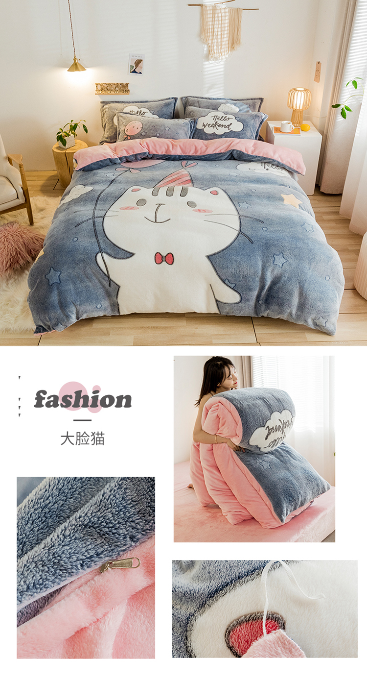 (总)佰亿莱 2025新款牛奶绒豆豆绒印花床盖四件套,百富蓝,豹纹狗狗,瑾紫花,可可蓝,猫咪酱,奶油波波,手捧玫瑰,条纹蝴蝶结,旺仔乐园