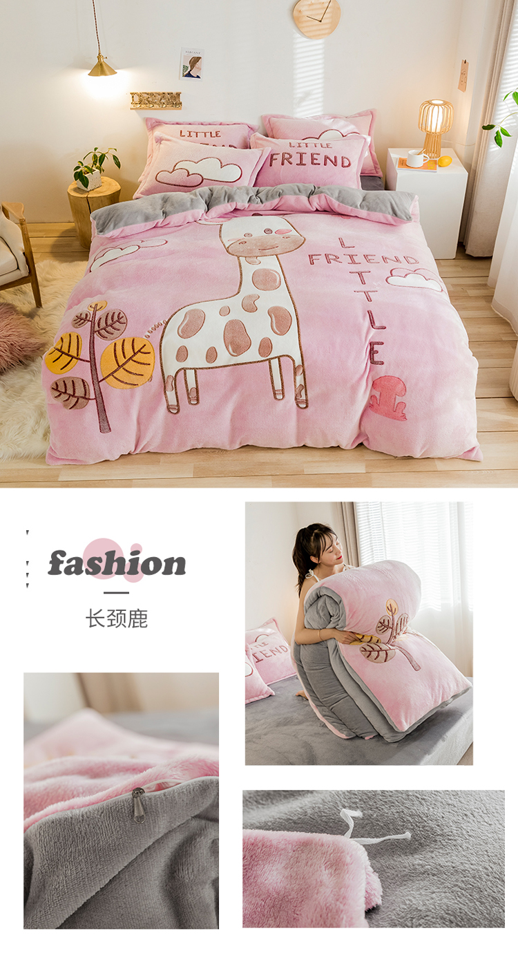 (总)佰亿莱 2025新款重工牛奶绒贴布绣四件套,豹纹KT猫-咖,豹纹KT猫-蓝,快乐朋友,礼物狗狗,猫咪公主,木马猫咪-小粉格