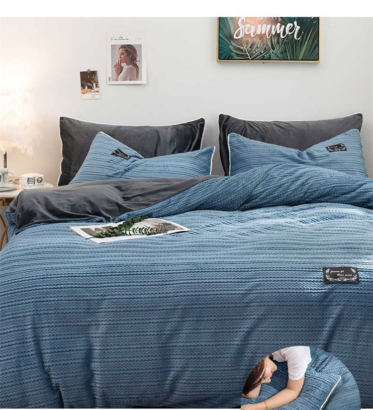 商品名称:佰亿莱 2024新款宝宝绒四件套 条纹蓝