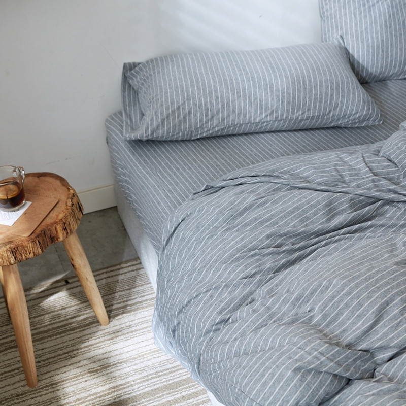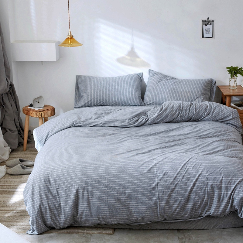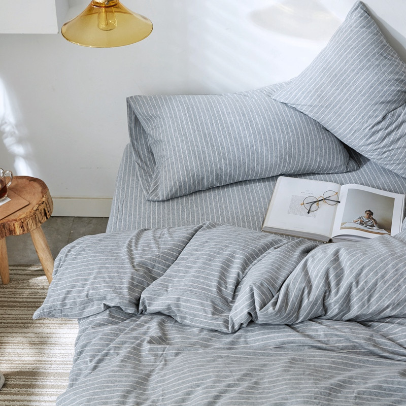 当前位置: 91家纺网 > 商品网购 > 床品套件 > 四件套 > 针织棉四件套 > 华超针织 2021新款针织四件套 麻灰细条