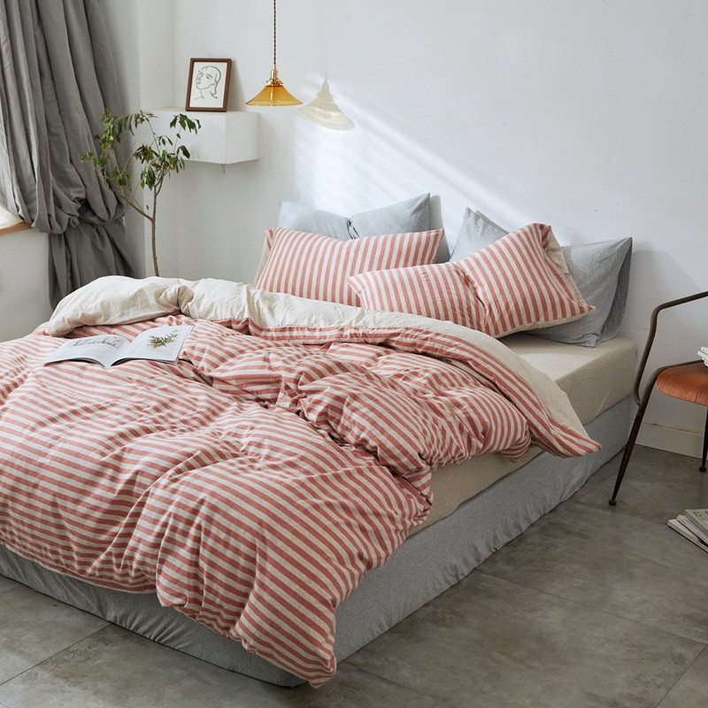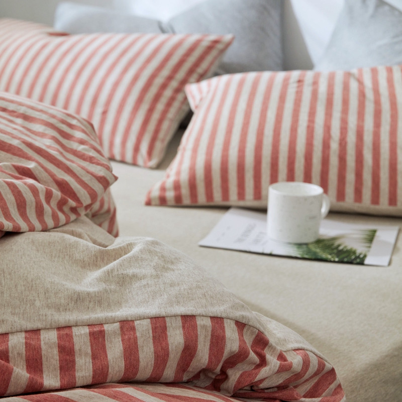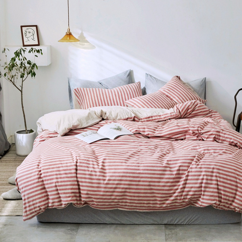 当前位置: 91家纺网 > 商品网购 > 床品套件 > 四件套 > 针织棉四件套 > 华超针织 2021新款针织四件套 棕红中条