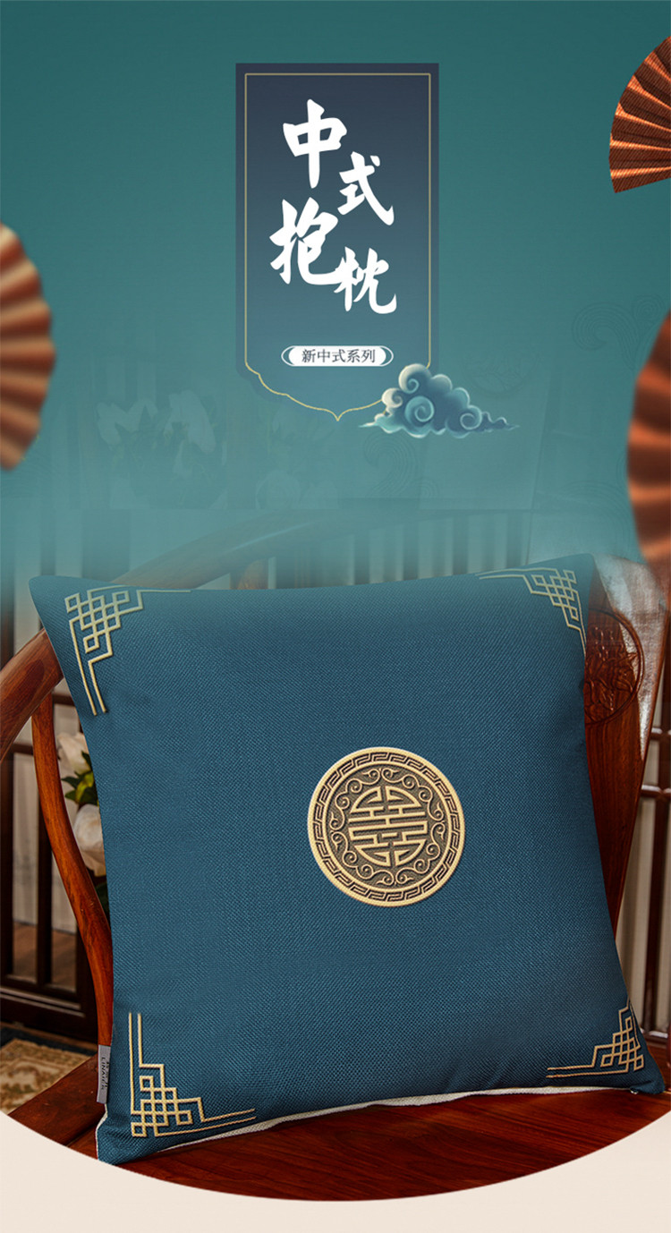 商品名称:北辰 2020新款麻布印花新中式抱枕 富贵-米色