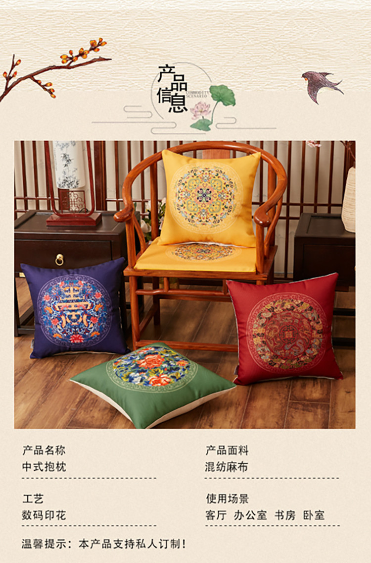 商品名称:北辰 2020新款麻布印花新中式抱枕 秋香-咖色