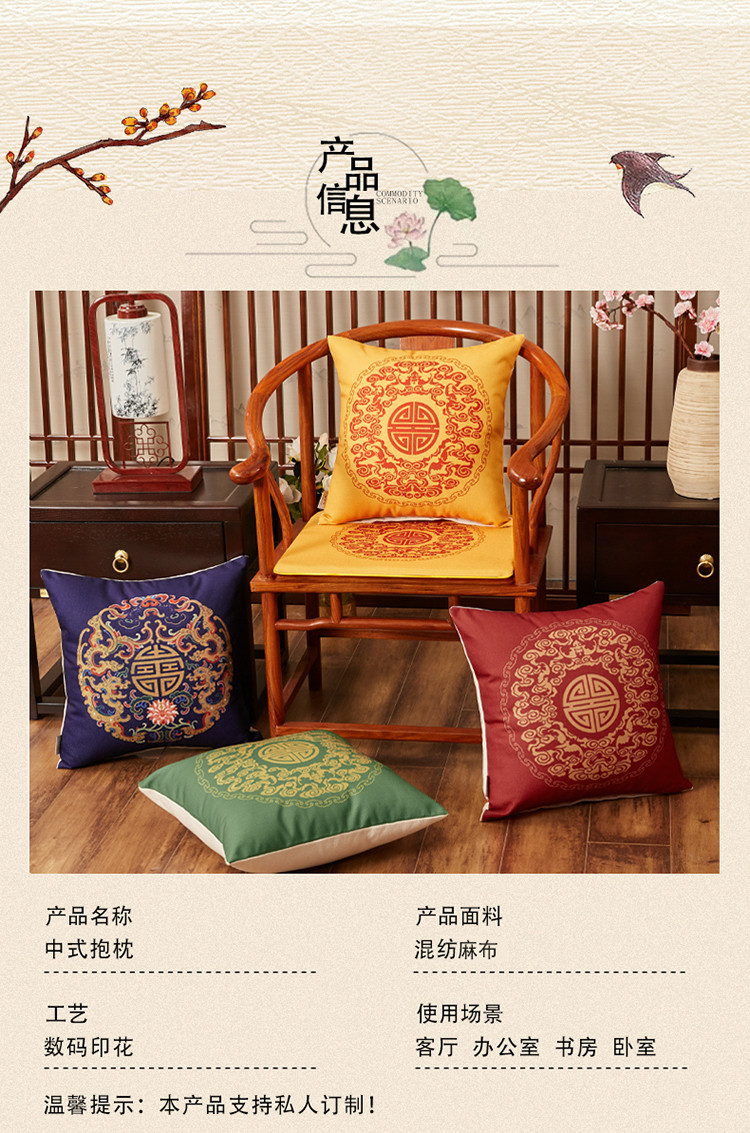 商品名称:北辰 2020新款麻布印花新中式抱枕 如意-咖