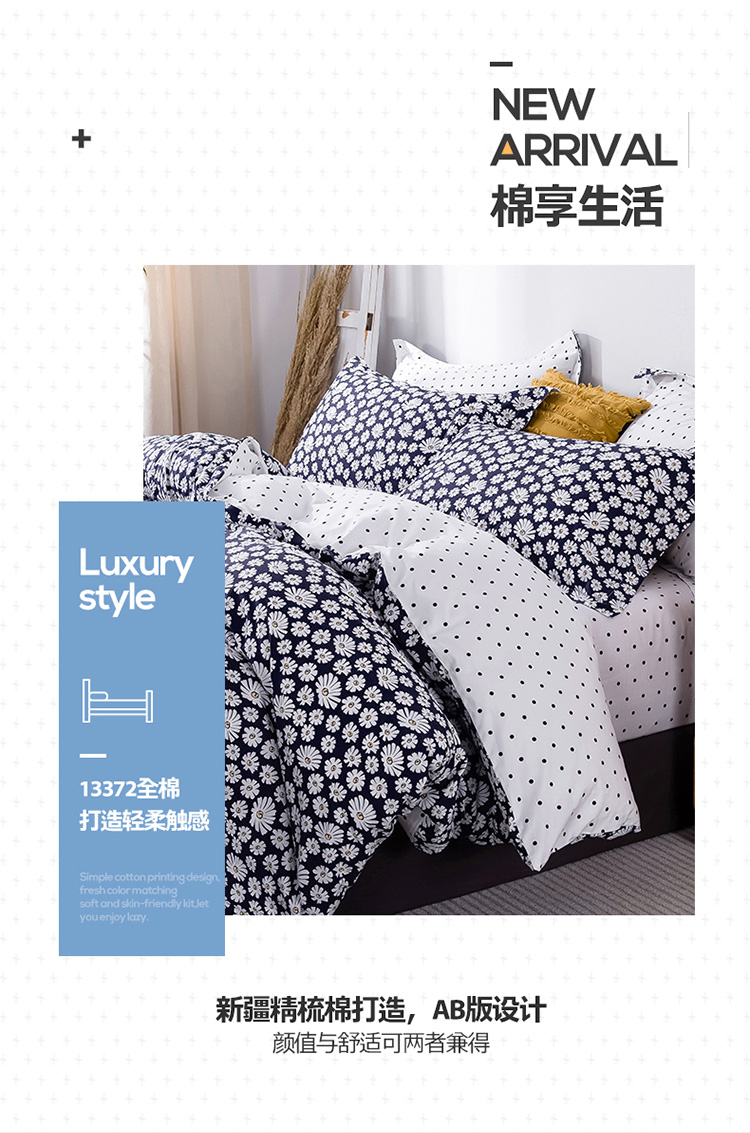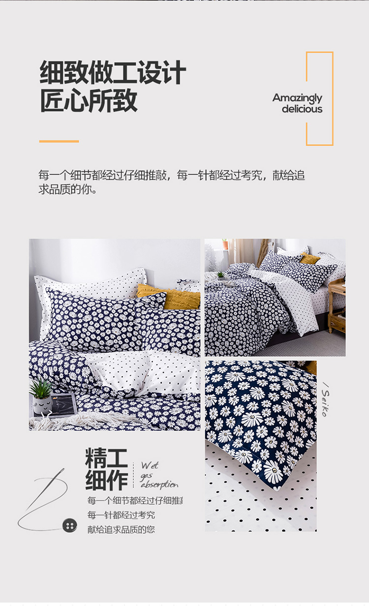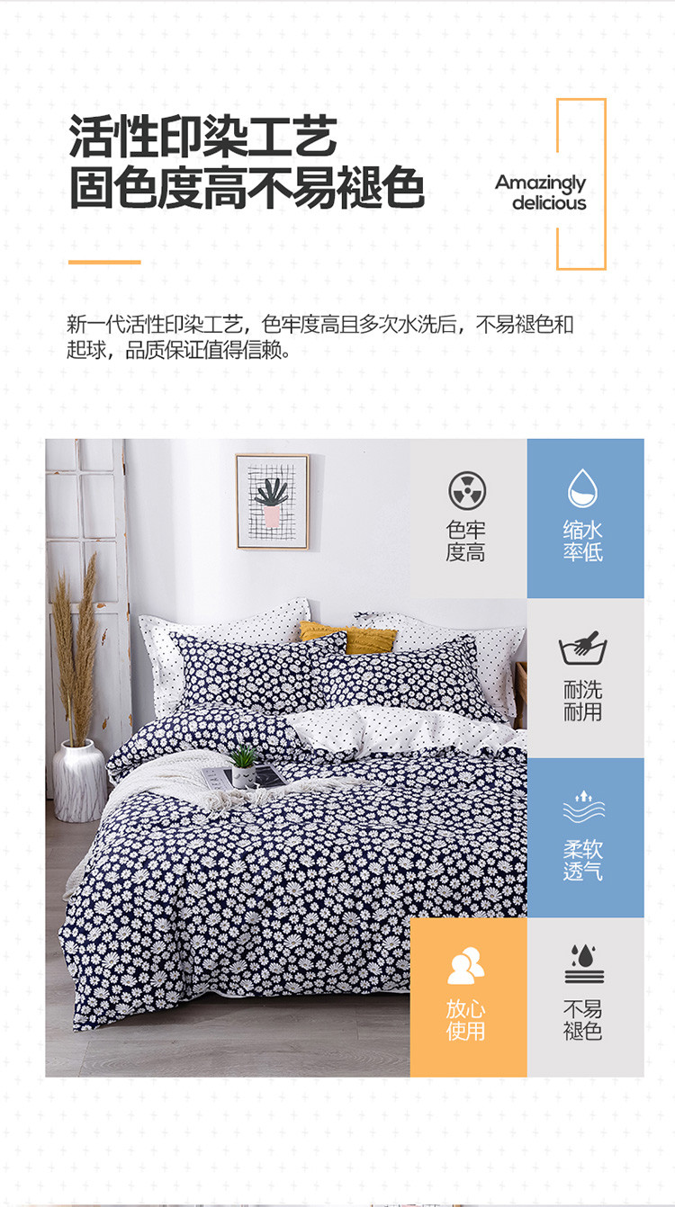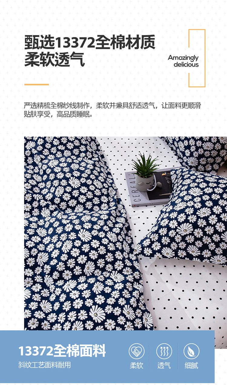 当前位置: 91家纺网 > 商品网购 > 床品套件 > 四件套 > 全棉普通四件套 > 宝齐莱家纺 2020新款13372印花小清新四件套 小雏菊