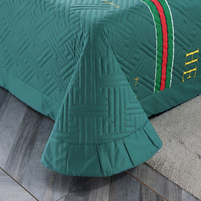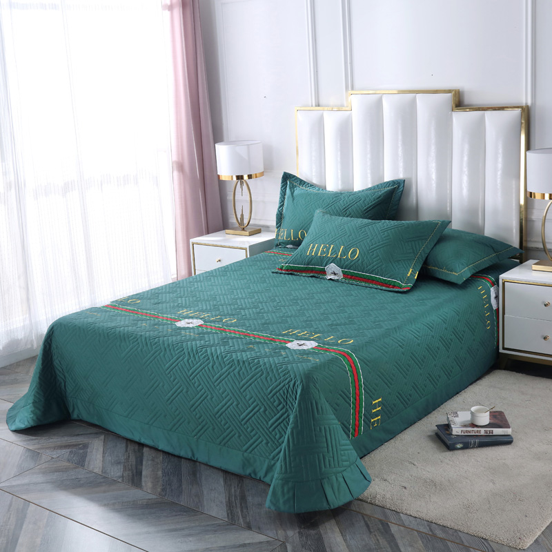 商品名称:OL 2021新款13372全棉夹棉活性印染单品床盖 你好-绿